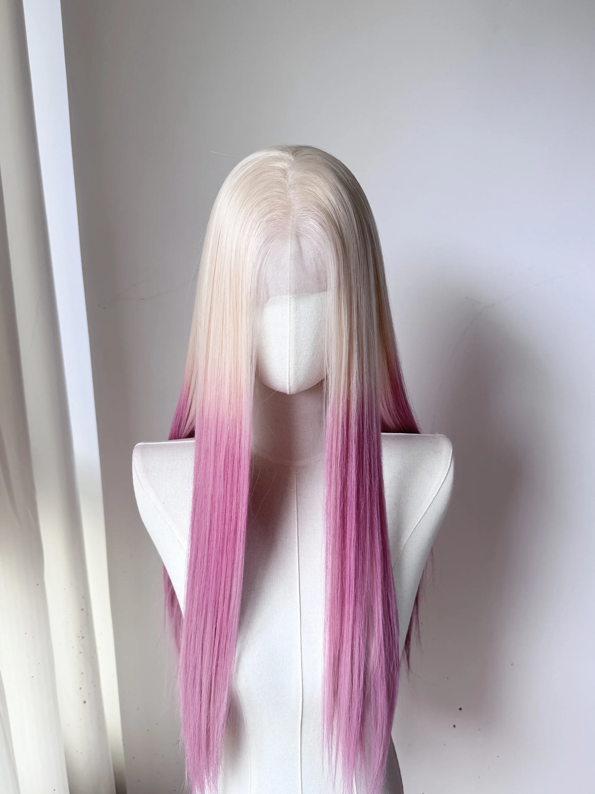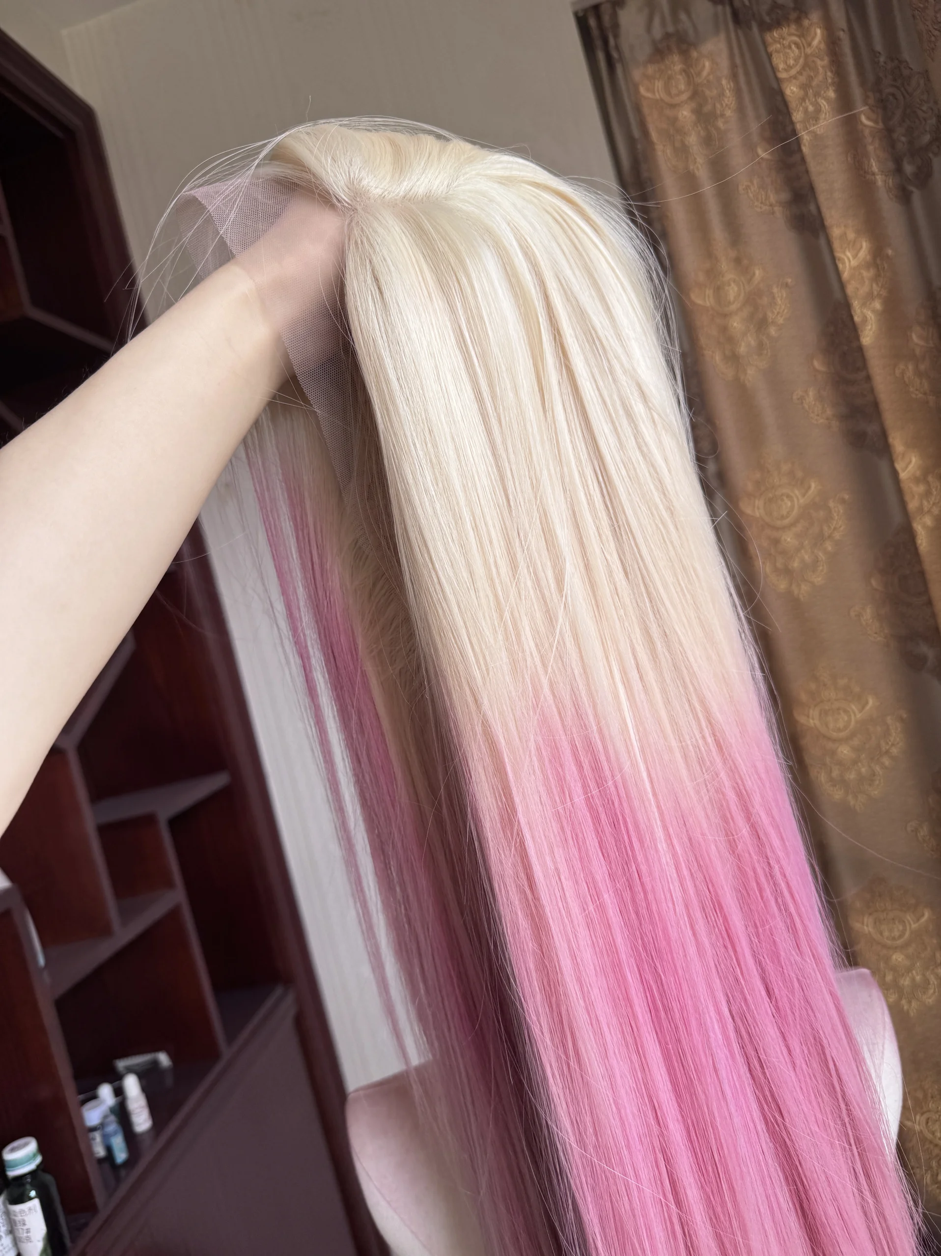 Ombre Blonde Pink Lace Front Wig 13*4 26inch Long Straight Lace Front Wig Synthetic High Temperature Fibers Glueless Pastel Wigs