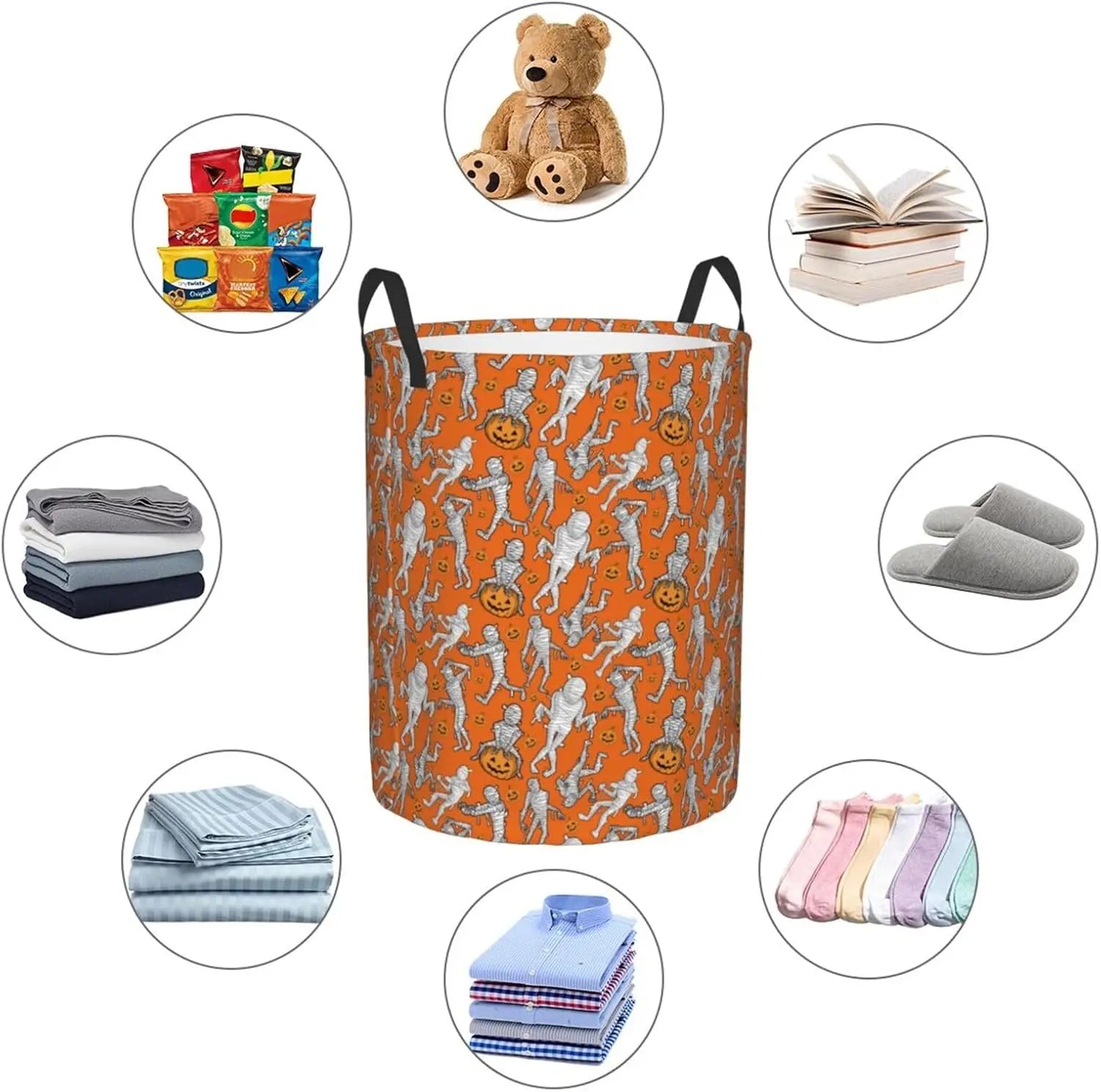 Orange Large Laundry Basket with Handles Halloween Mummy Baby Kids Dirty Clothes Laundry Hamper