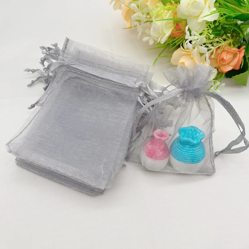 100pcs Gray Organza Gift Bags with Drawstring for Wedding Favors Party Supplies Candy Jewelry Packaging Storage Sachet Pouch