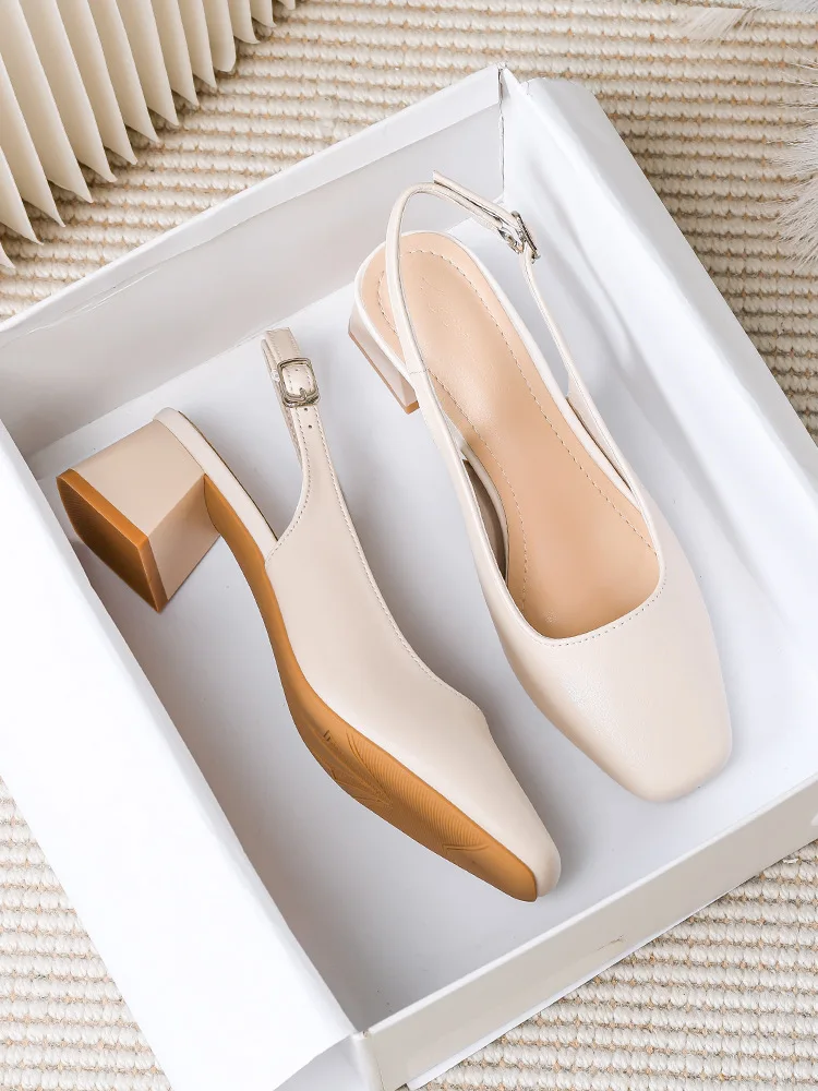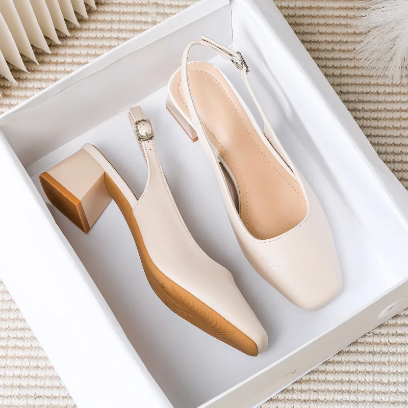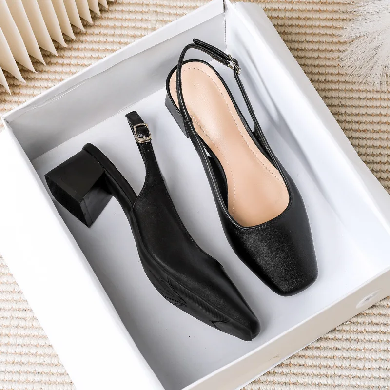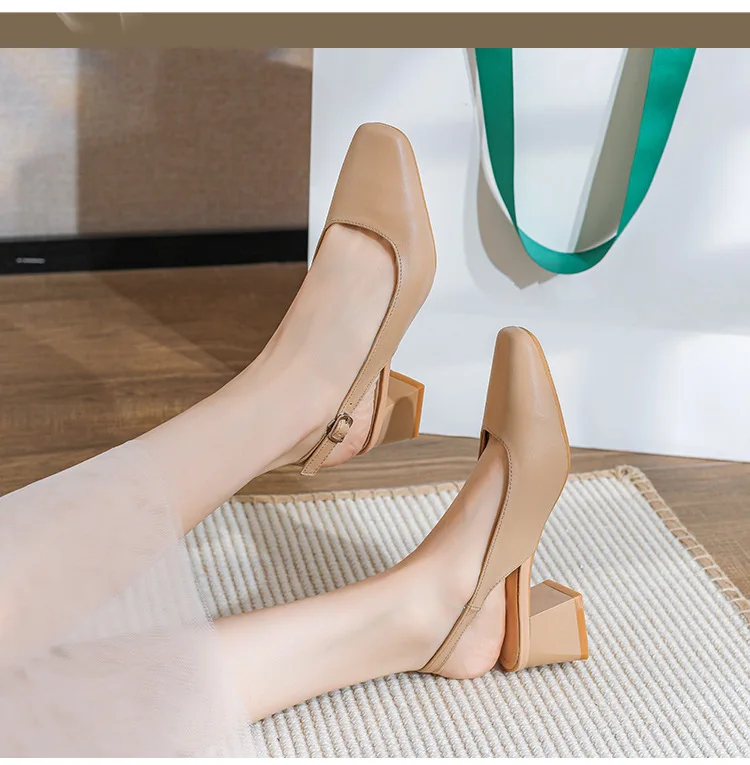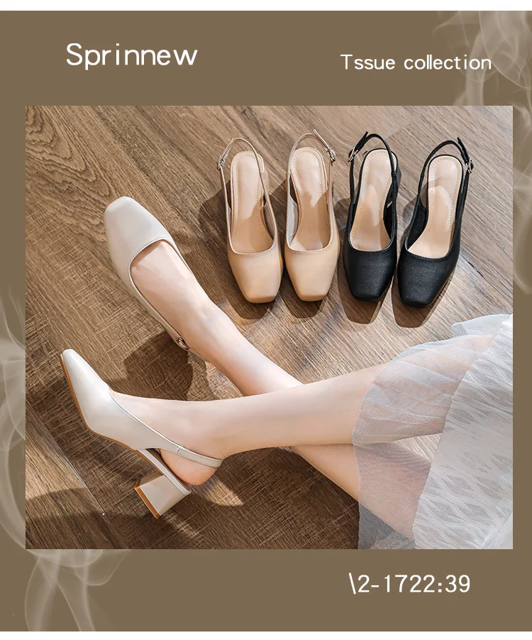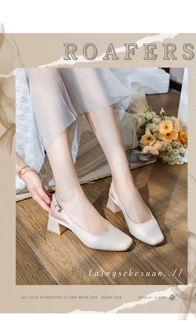 Oulylan Women Trendy Buckle Strap Sandals Plus Size Thick Heeled Slipper Summer Square-toed High Heels Elegant Pure Color Sandal
