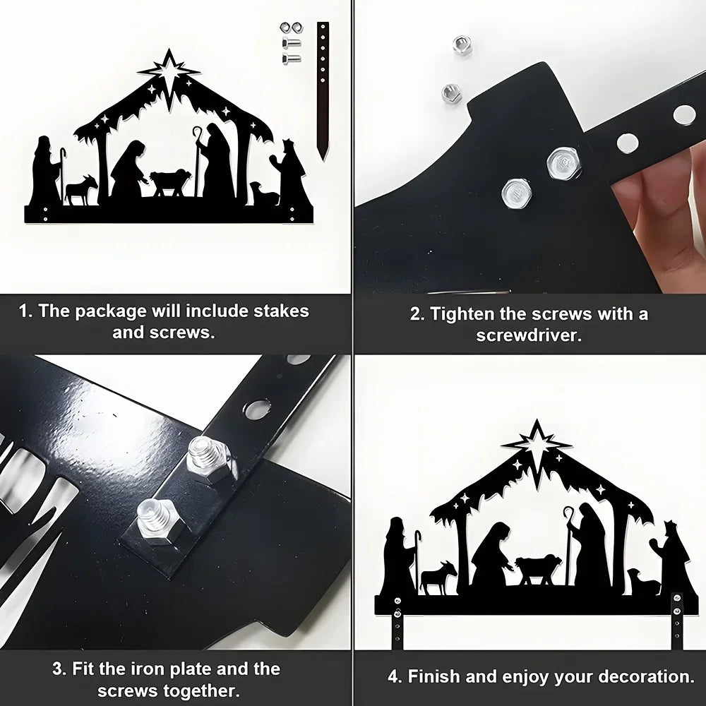 Outdoor Sacred Night Nativity Metal Projection Ornament Christmas Eve Décor Perfect Garden Party Ambiance and Festive Atmosphere