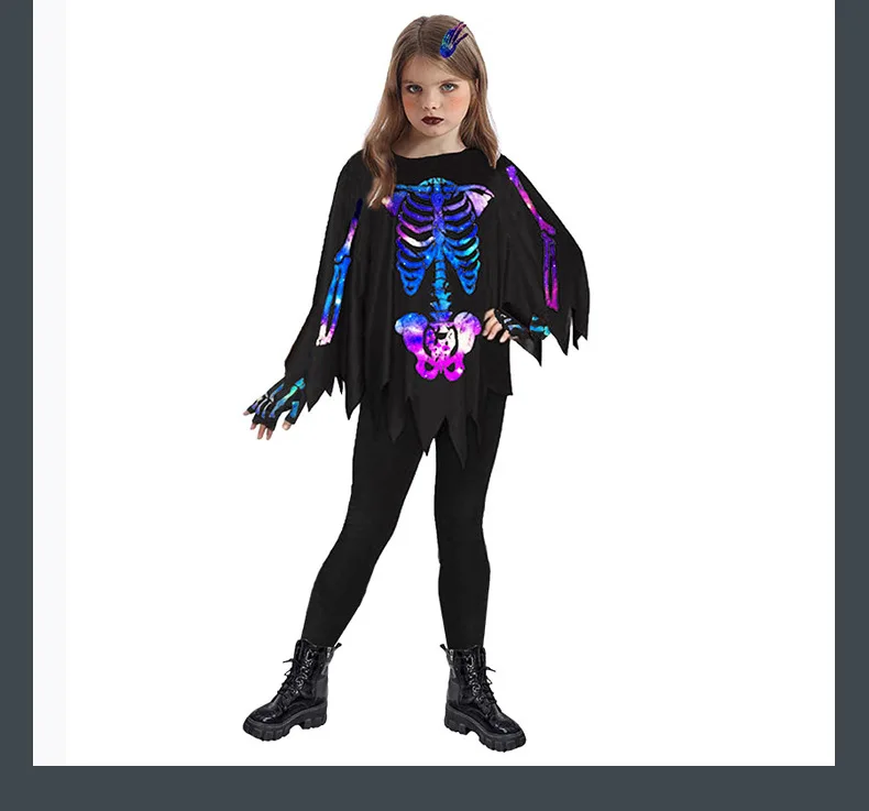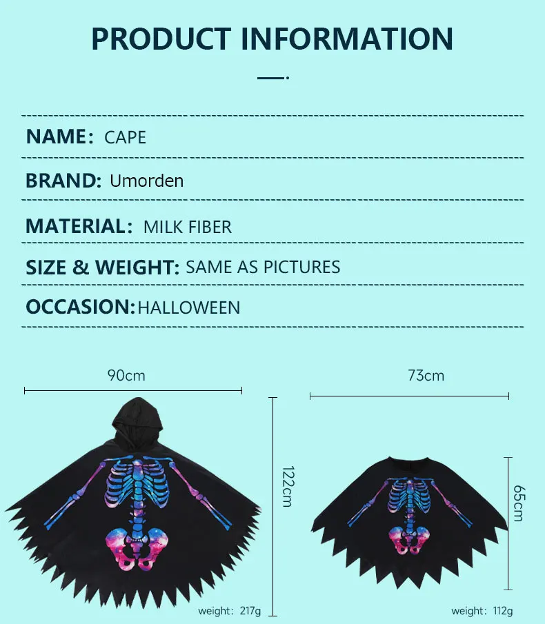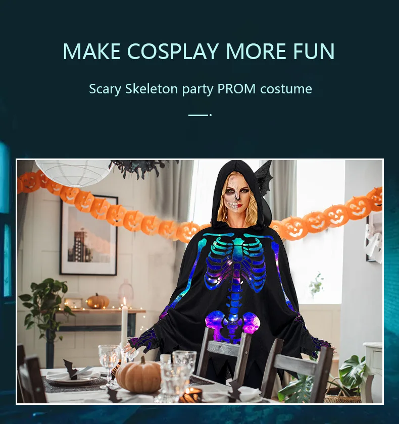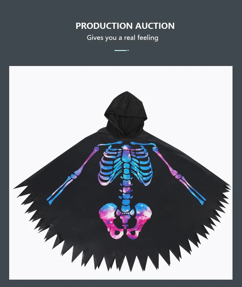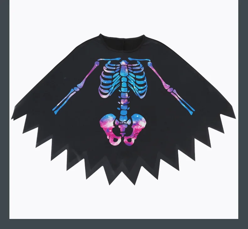 Parent-child Skeleton Costume Cloak Cape Poncho for Child Adult Unisex Scary Halloween Costumes Fancy Dress Outfit Fluorescence