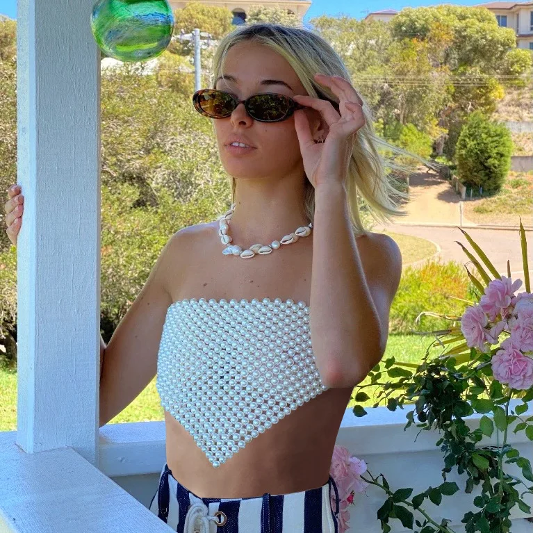Pearl Body Chain Sexy Lingerie Women Bikinis Waist Chain Chain Chains For Chest Wrap Waistcoat Chain Ultra-short Navel Vest