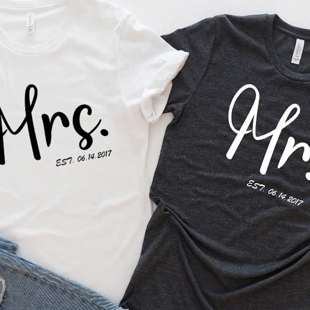 Personalized Mr And Mrs Custom Wifey Hubby T Shirt Bride Groom Est Wife Husband Just Married Honeymoon
