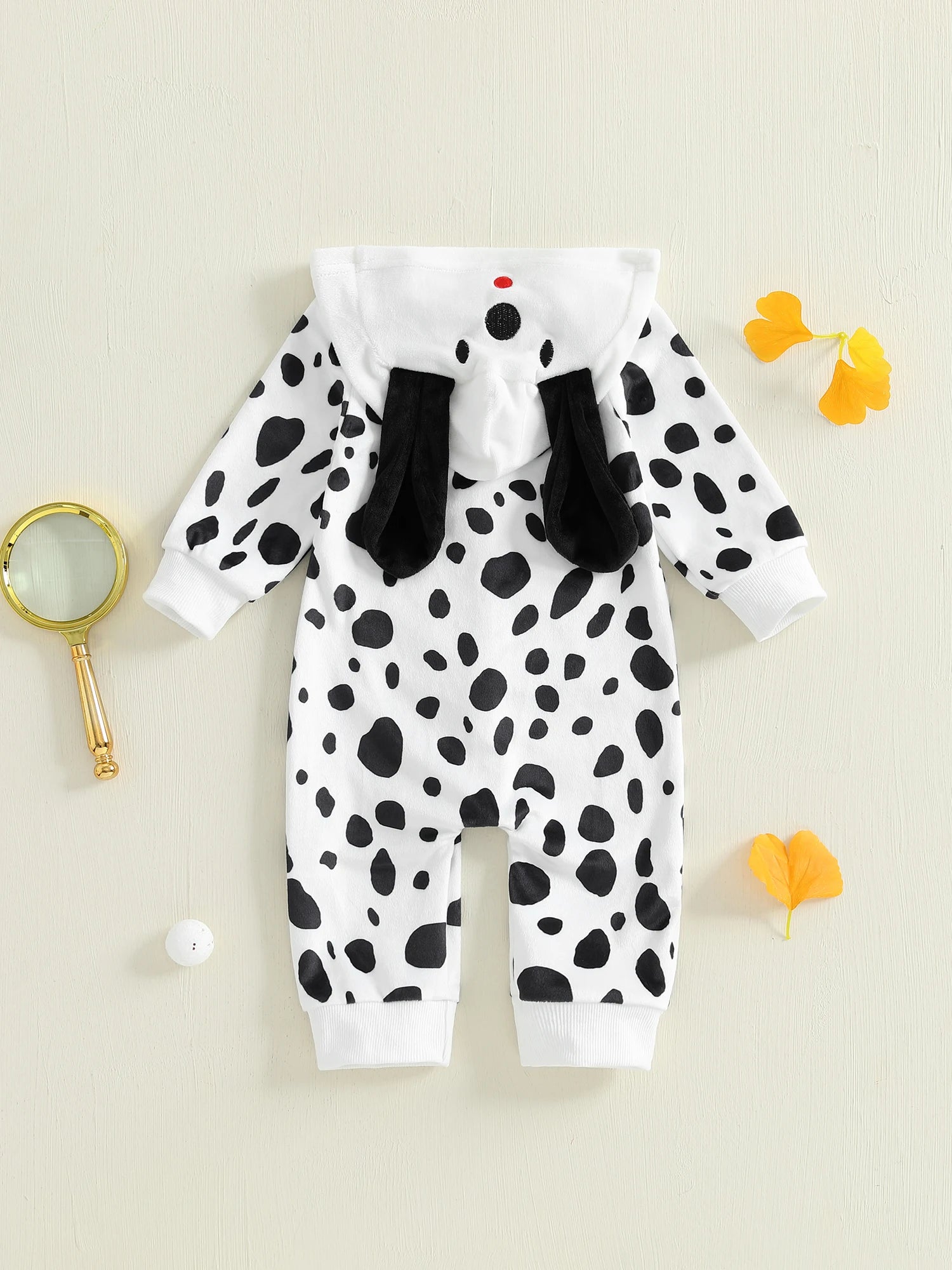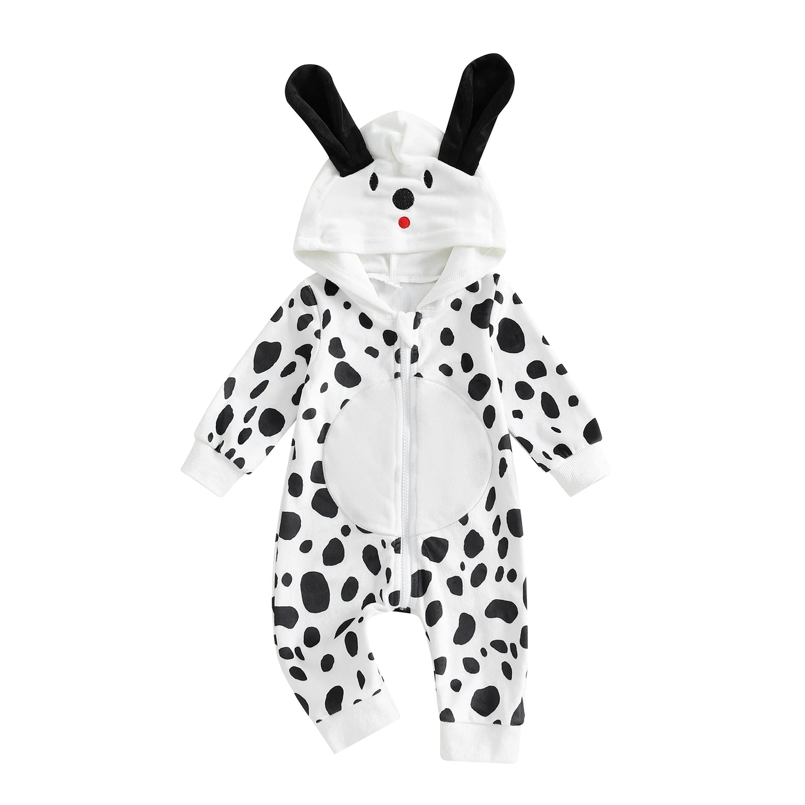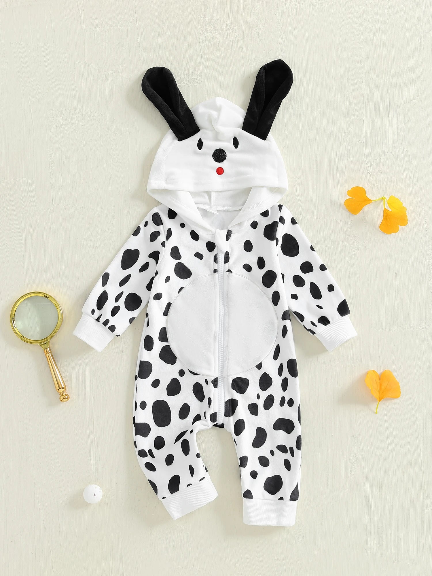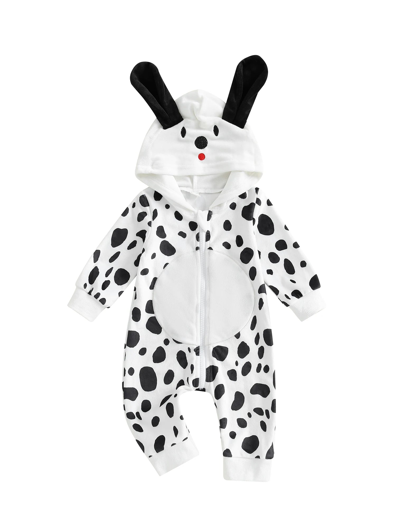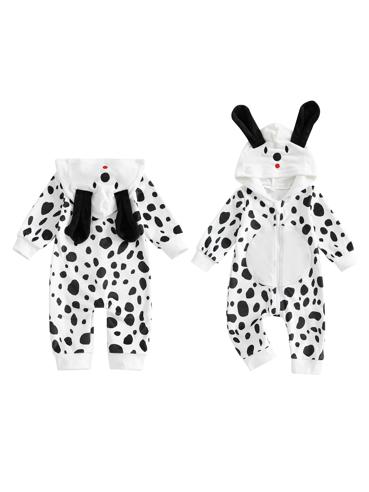 Baby Halloween Dog Costume Long Sleeve Hood Zip Up Full Length Romper Fall Winter Animal Clothes