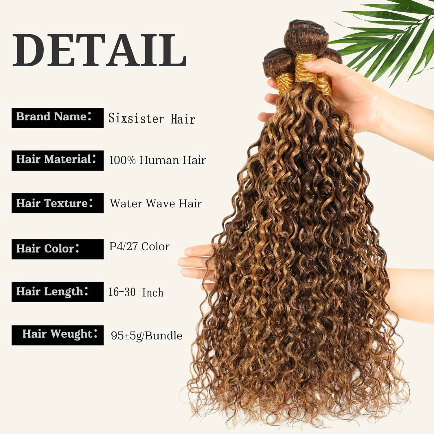 Piano Color P4/27 Highlight Curly Wave Bundles Chocolate Brown and Honey Blonde Track Mix Deep Weave Brazilian Human Hair Bundle