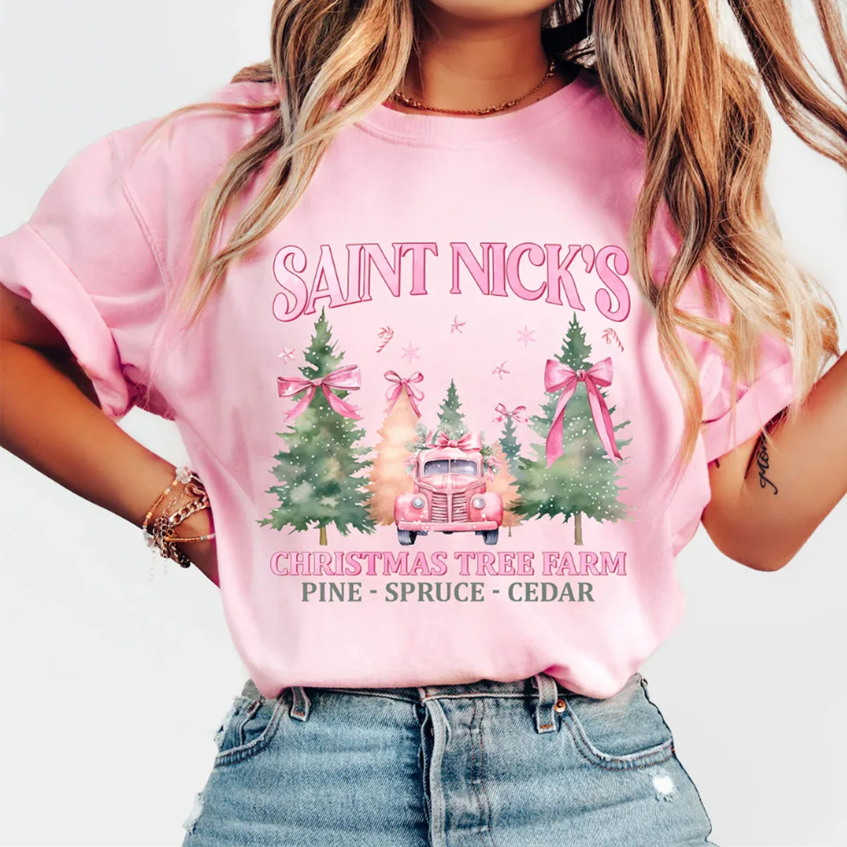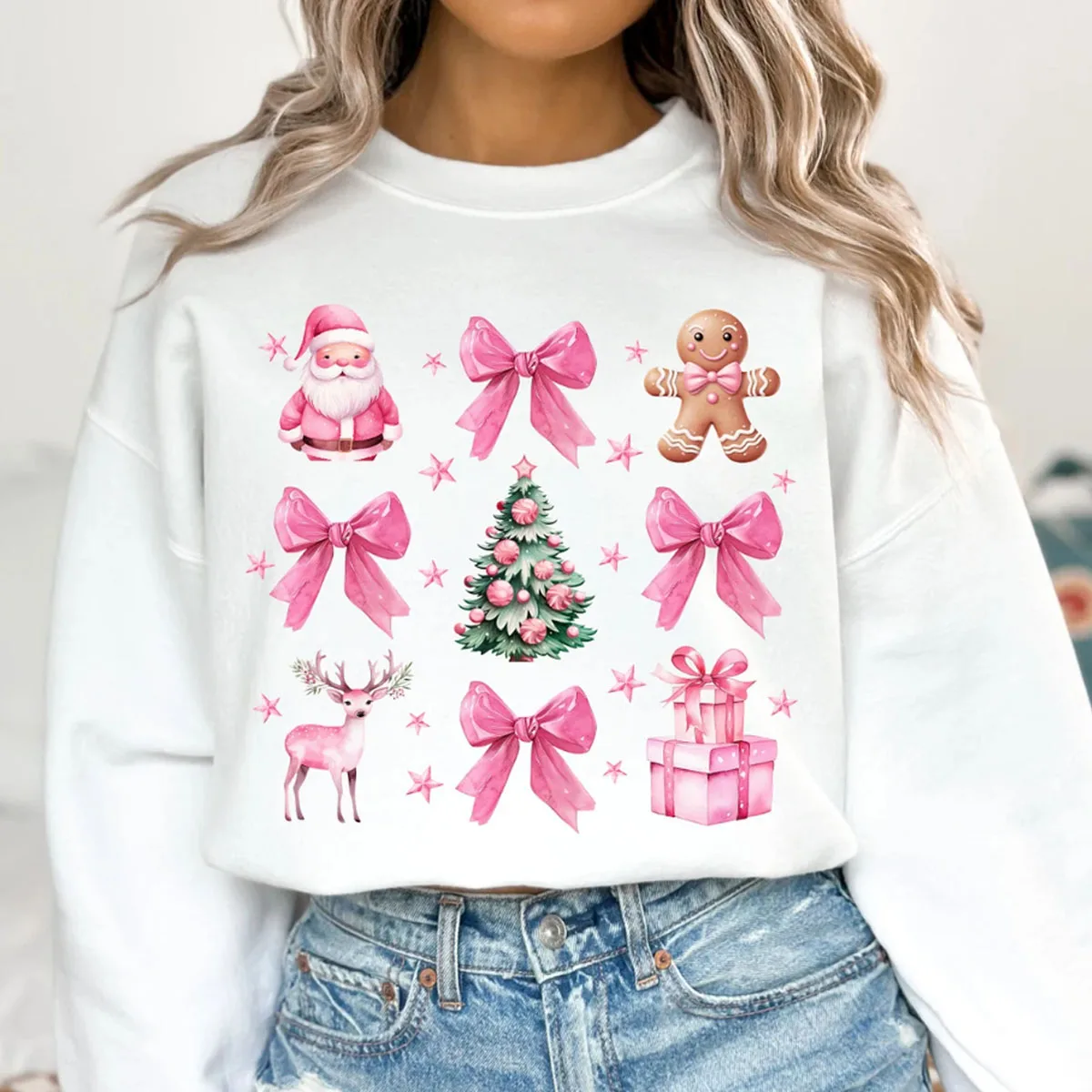 Pink Merry Christmas Bow Santa Claus Heat Transfer Patch Sticke Iron-On Decals T-shirts Sweatshirts Clothing Fabric Winter Decor