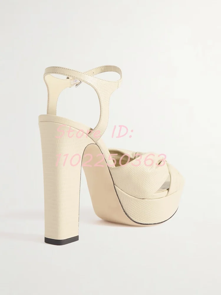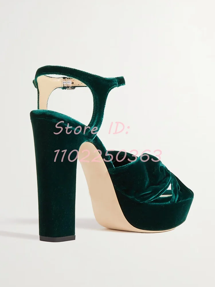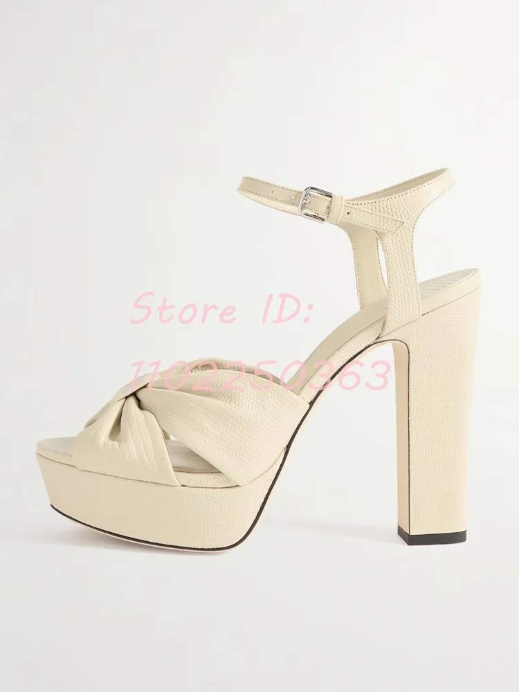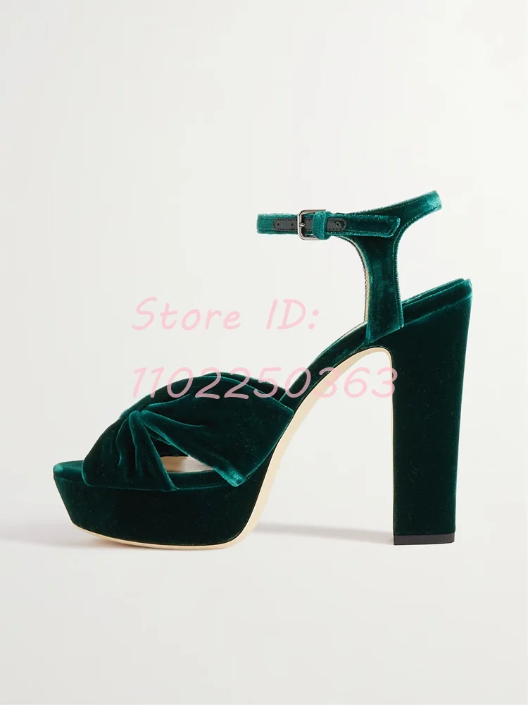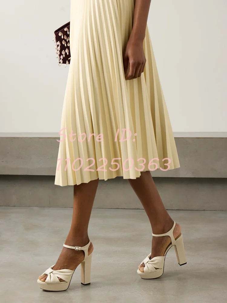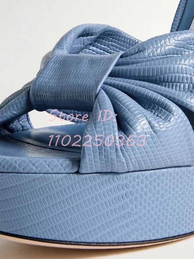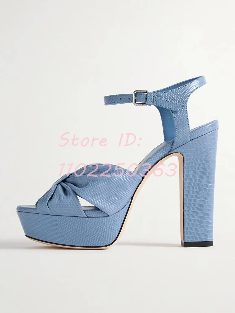 Platform Blue Knotted Straps High Heel Sandals Round Toe Back Buckle Strap Chunky Elegant Pumps 2025 Women Dress Modern Shoes