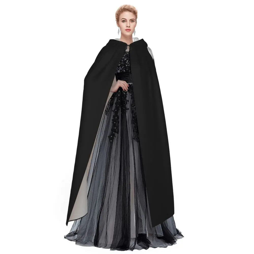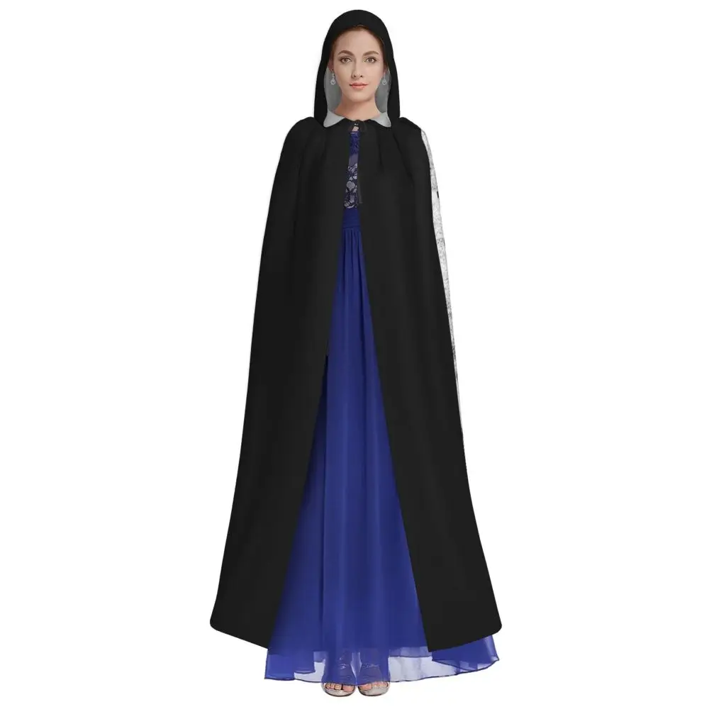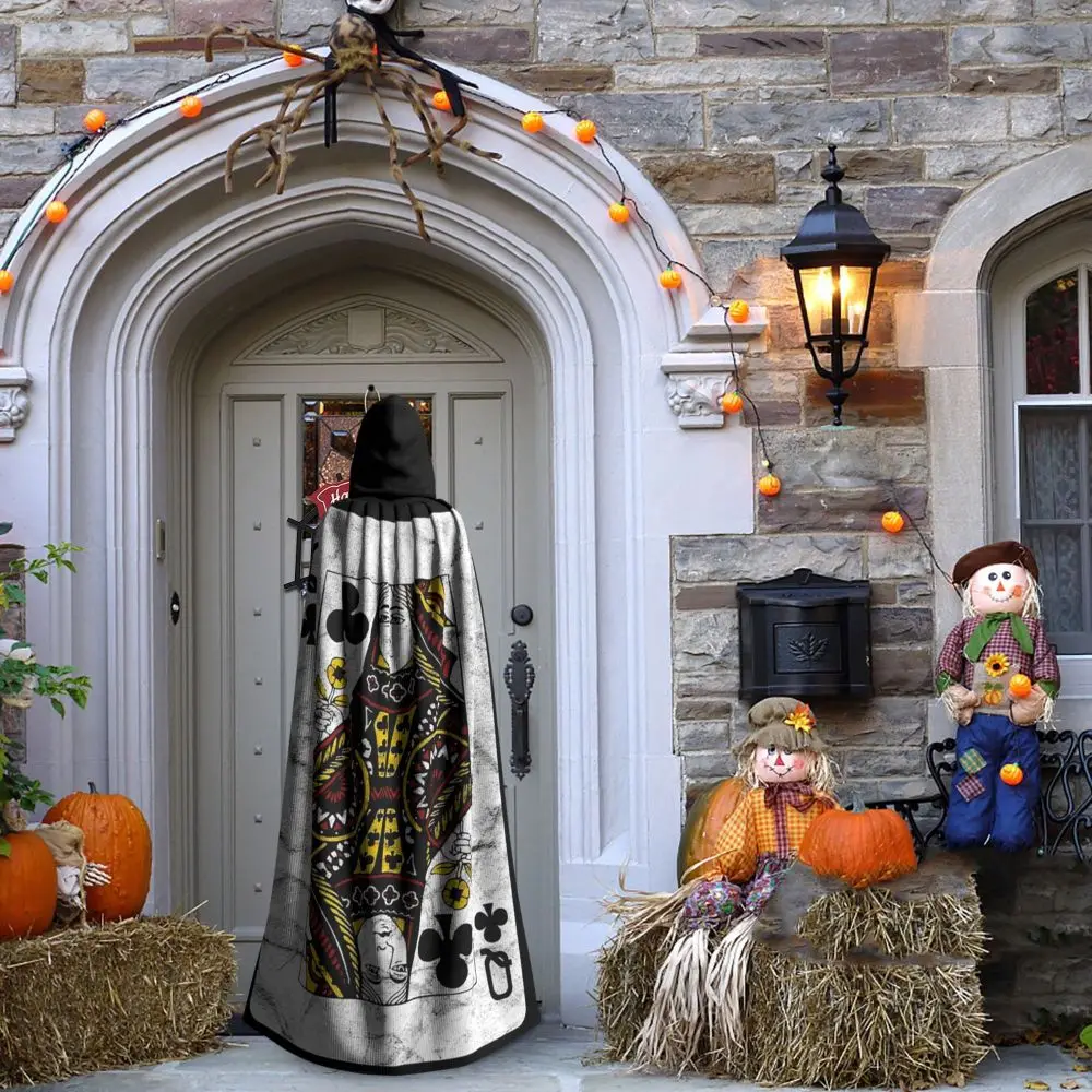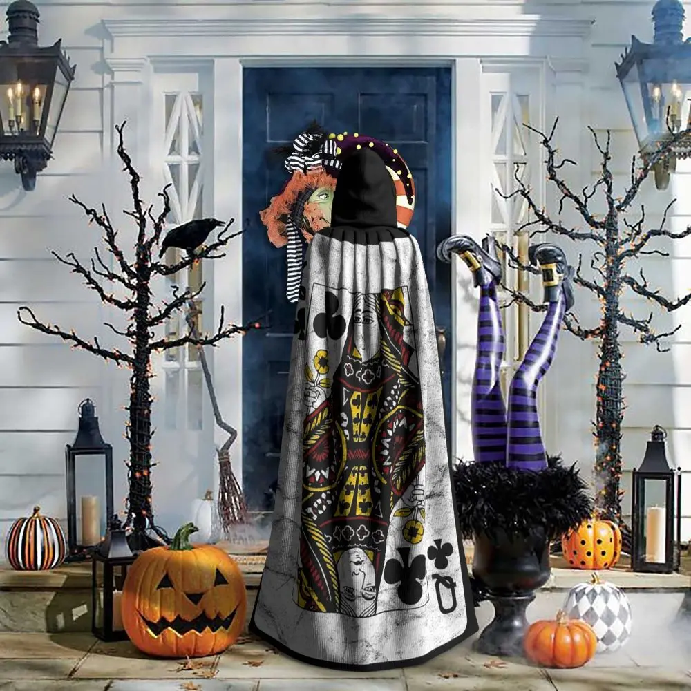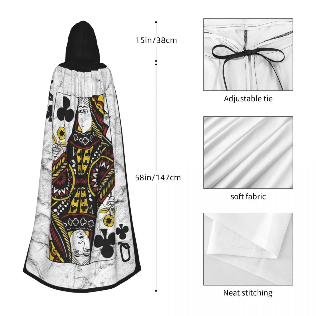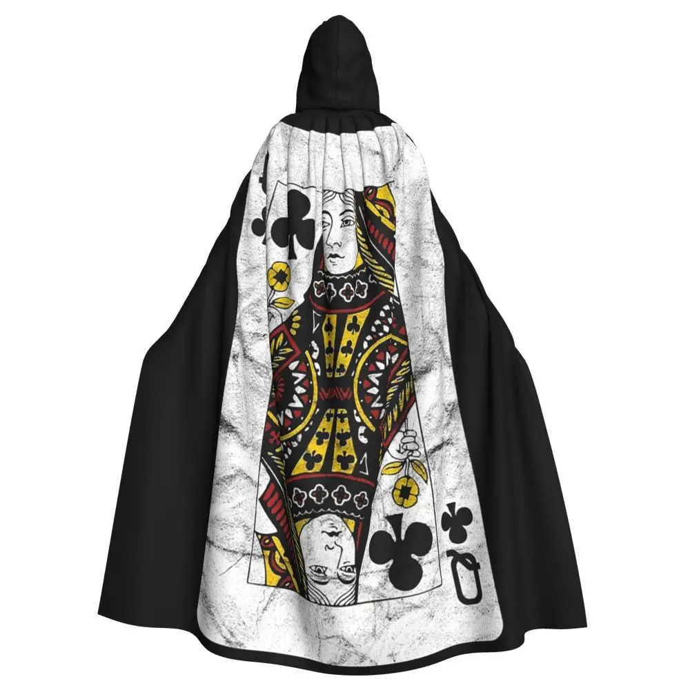 Playing Cards Queen Clubs distressed Design Long Hooded Cloak Witch Medieval Costume Cosplay Cape HalloweenVampire Adult Unisex