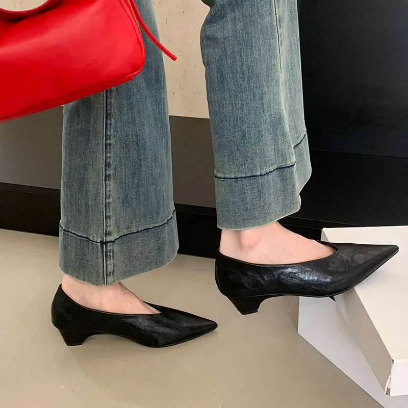 Pointed Toe Footwear Slip On Pumps Women Heeled Shoes Casual Female Fashion Shallow Ladies Low Heel Shoes 2025 New