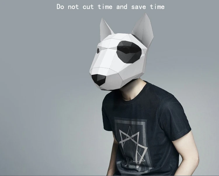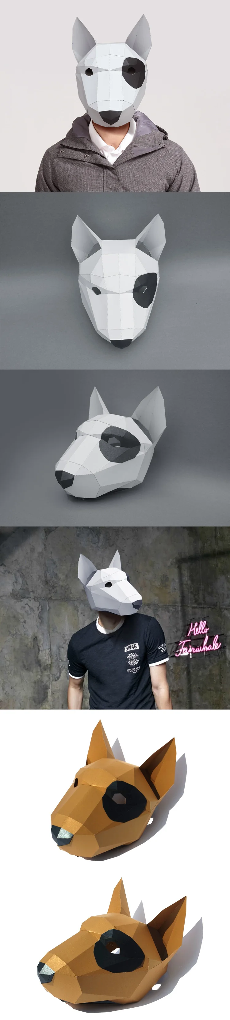 Pre Cut Paper Mask 3D Bull Terrier Halloween Costume Cosplay DIY Paper Craft Model Mask Christmas