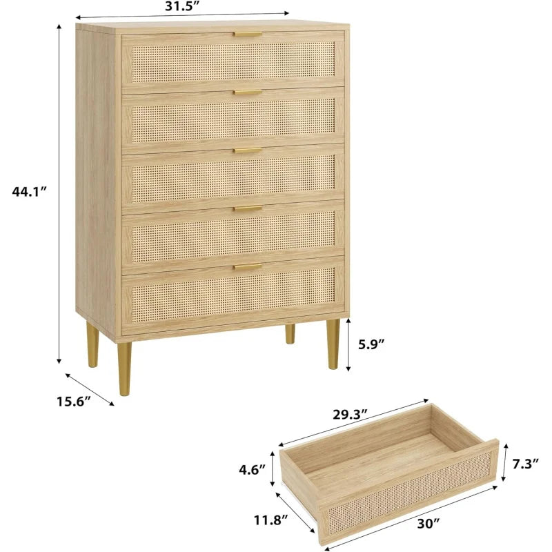 This dresser features 5 large capacity rattan drawers, offering ample storage space while adding a stylish, natural touch to your decor.
