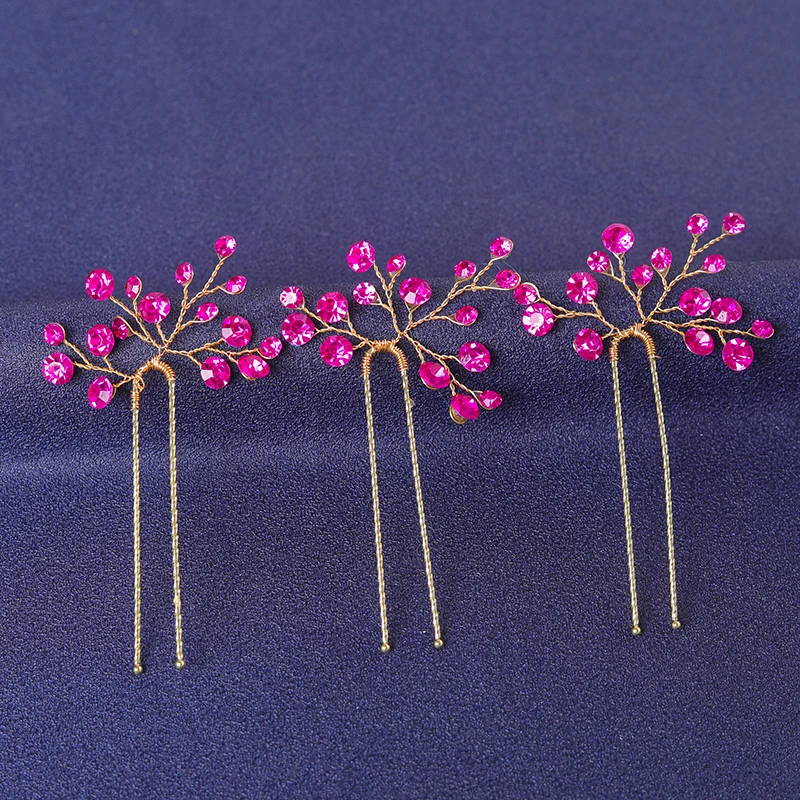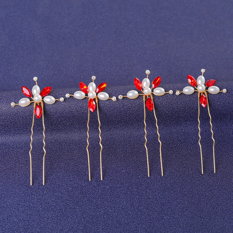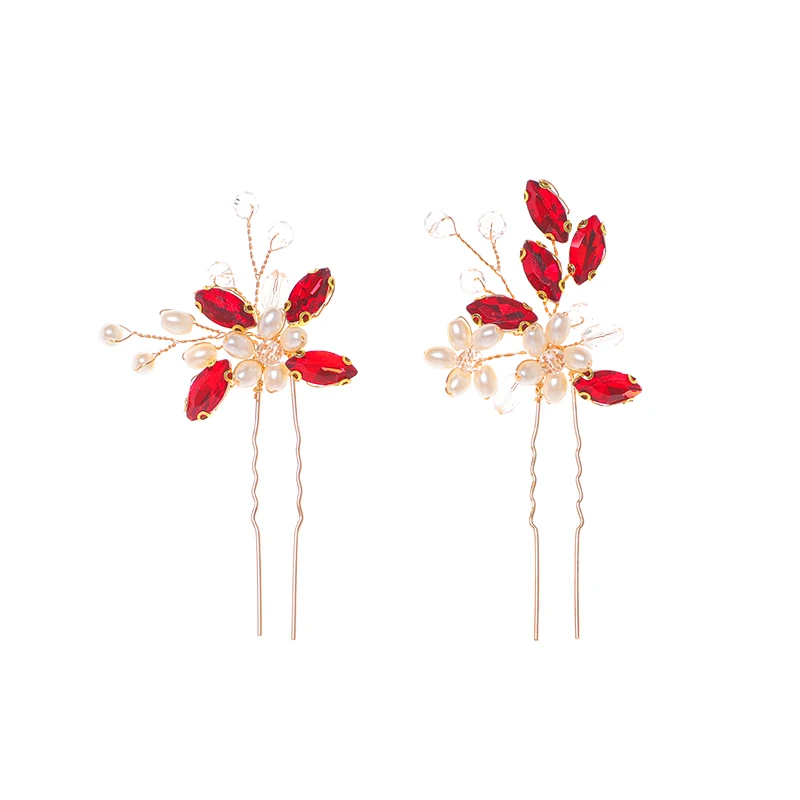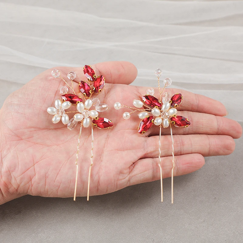 Red Trendy Crystal Hair Pin For Women Party Rhinestone Pearl Hair Clip Pin Bridal Wedding Hair Accessories Jewelry Hairpin Gift