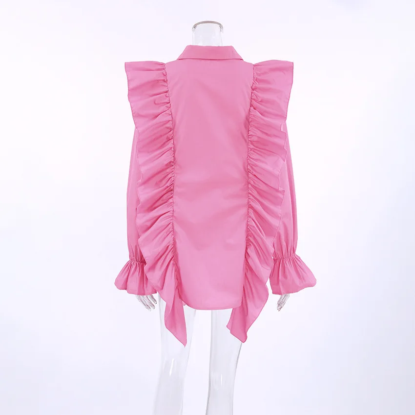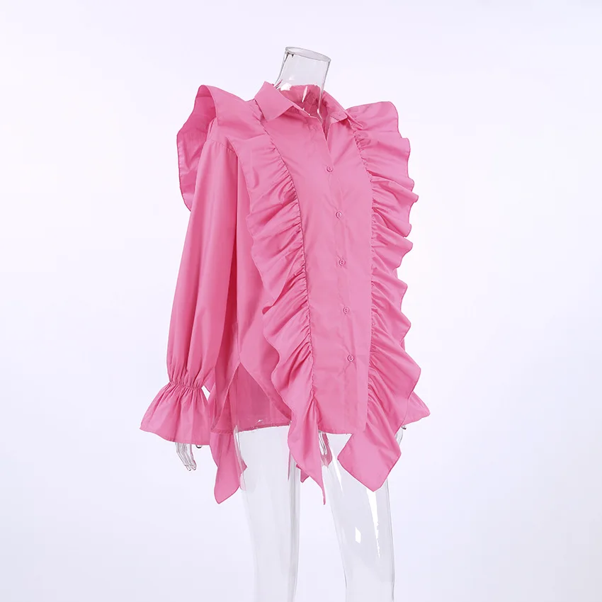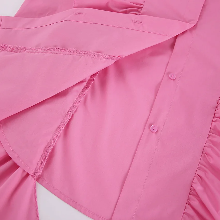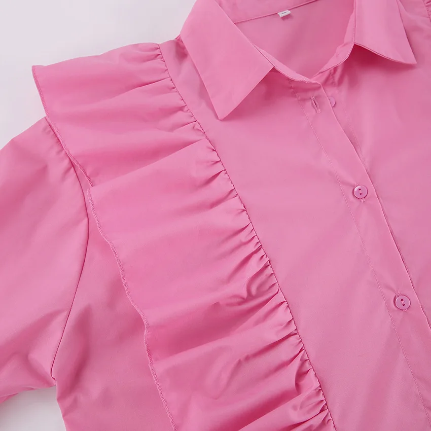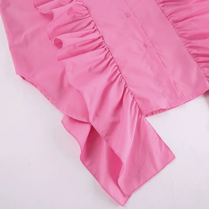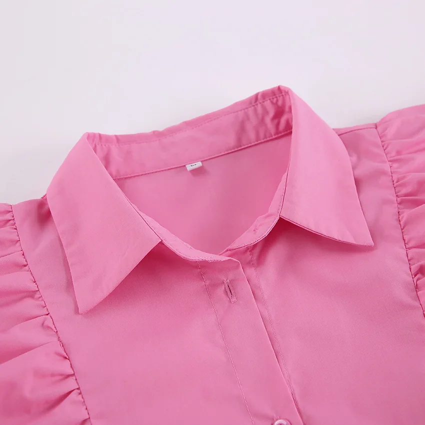 Ruffles Button-Down Shirt Women Summer Fashion Flare Sleeve Loose Shirts Blouses Lady Elegant Casual Tops Streetwear 2025