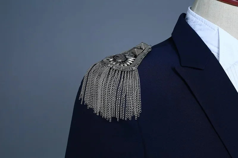 S-4XL Captain Officer Sailor Peacoat Costume Mens Blazer Suit Military Fringe Marching Band Jacket Uniform For Adult Coat+Pants
