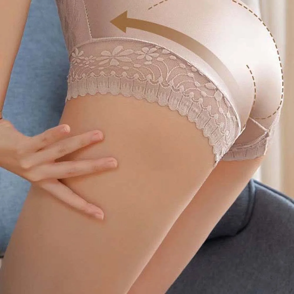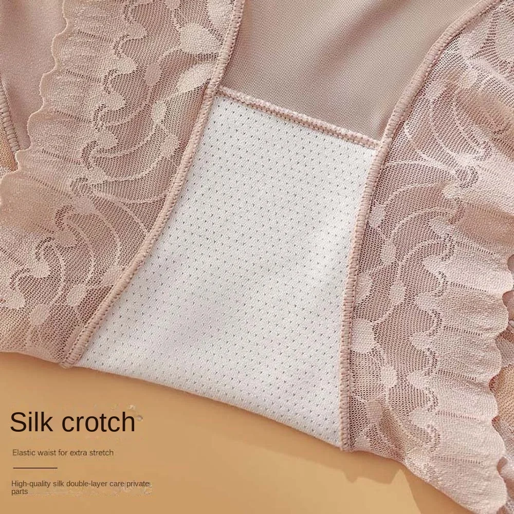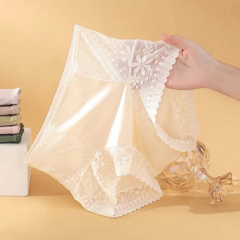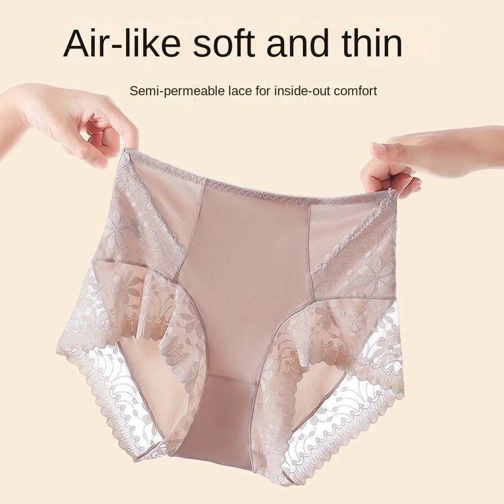Satin Women Silk Panties Lingeries Belly Contracting Plus Size Briefs High Waist Solid Color Ice Silk Lace Underpants Girls
