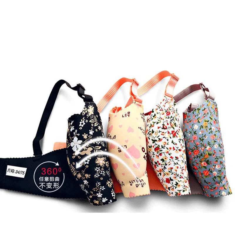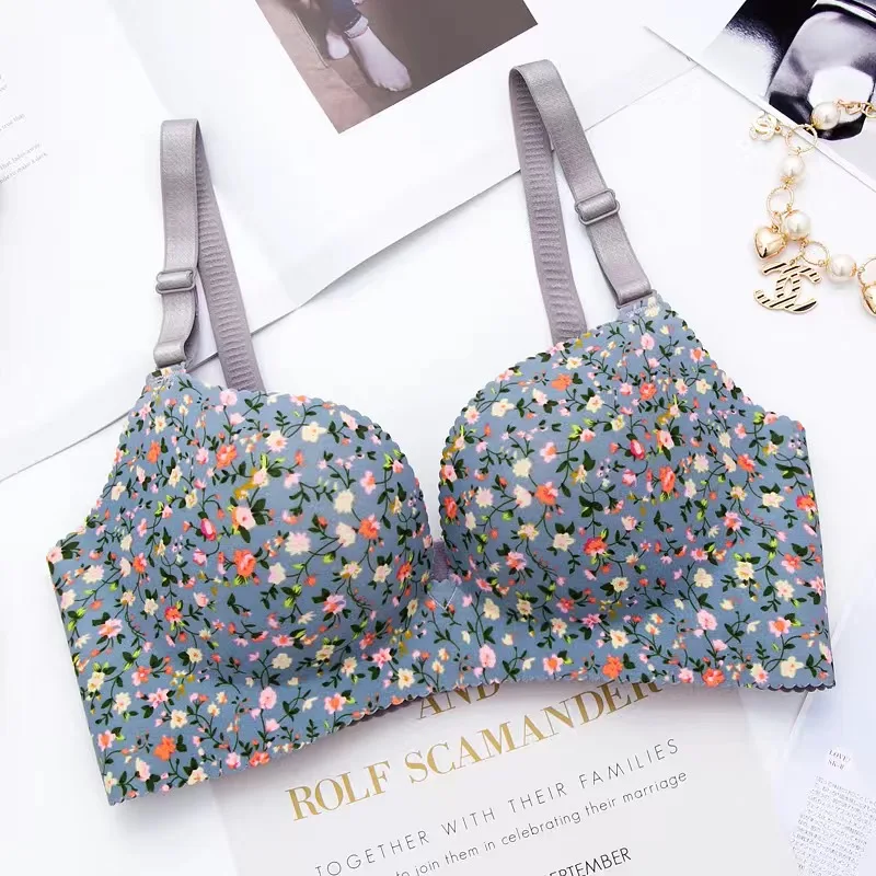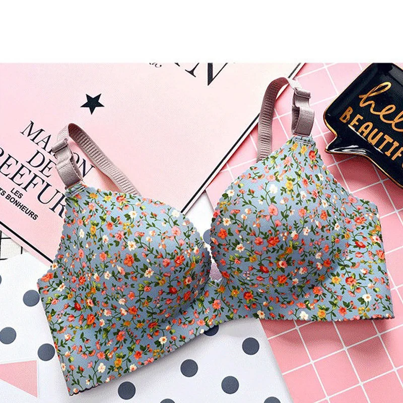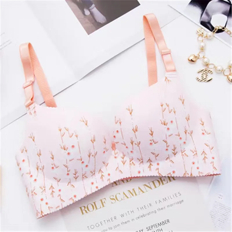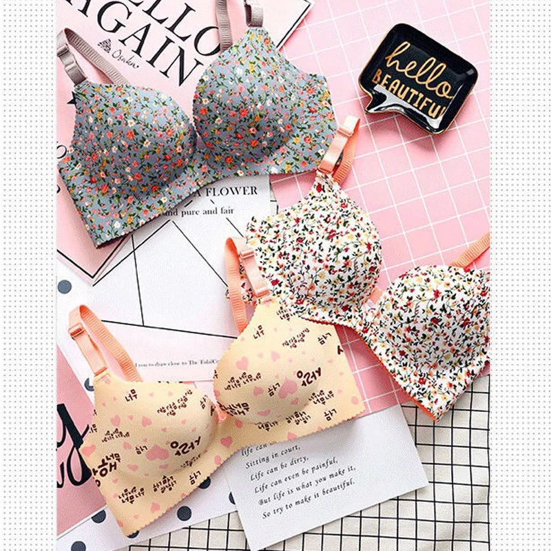 Sexy Bras for Women Pink Print Lingerie Seamless 3/4 Cup Bra Push Up Bralette Wireless Brassiere Female Underwear Intimates