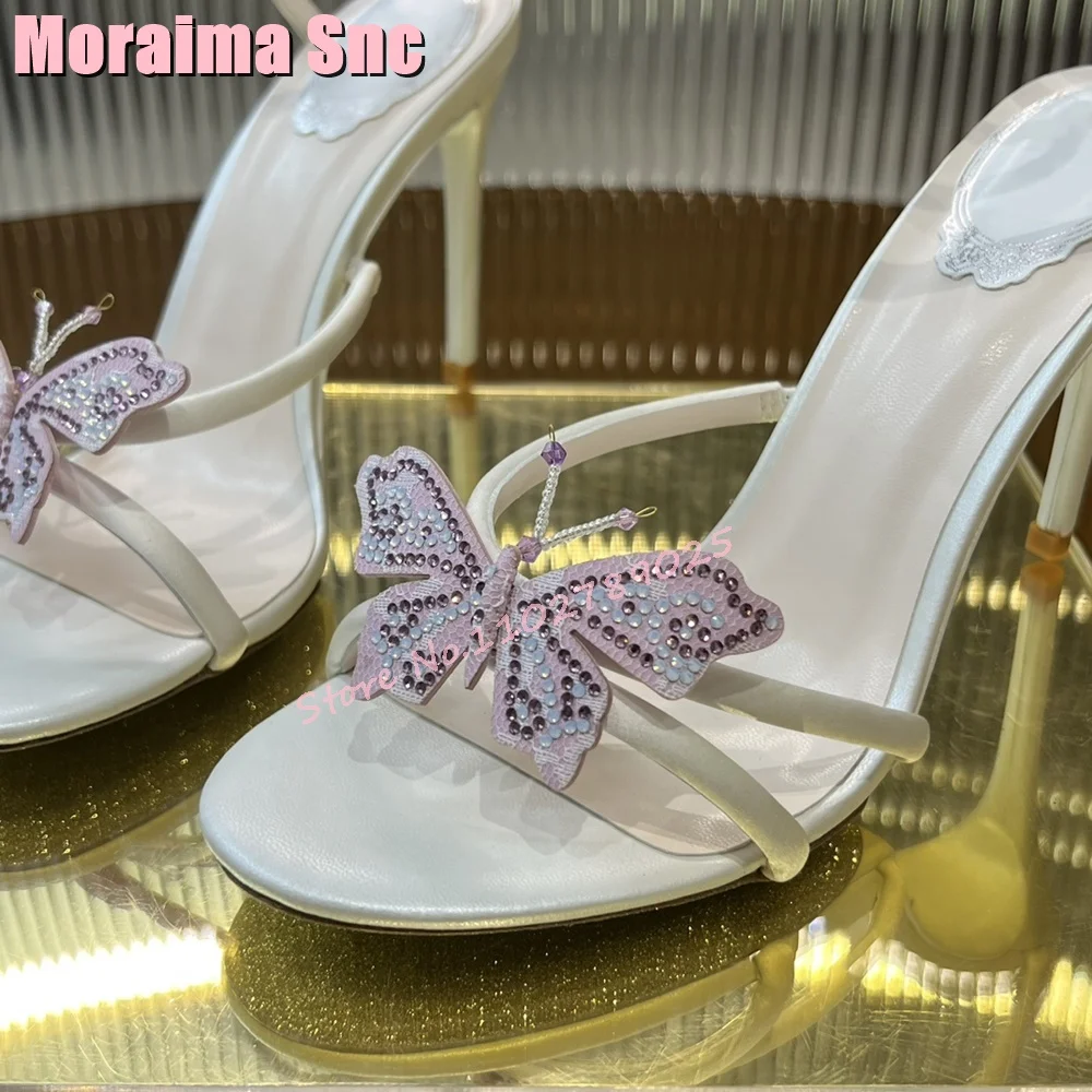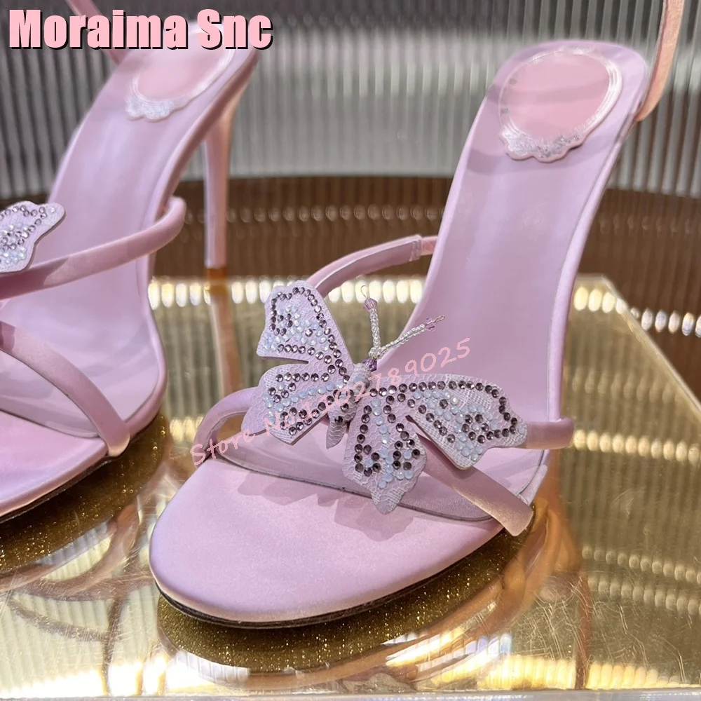 Sexy Crystal Mesh Pointed Toe Sandals Slingback Stiletto High Heel Slip On Fashion Women's Summer Shoes Banquet Party 2025 New