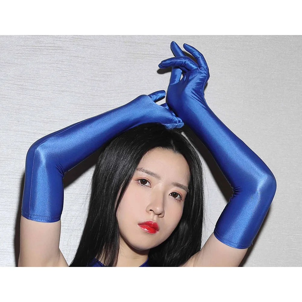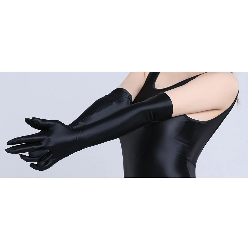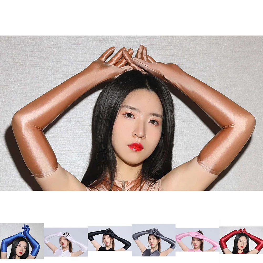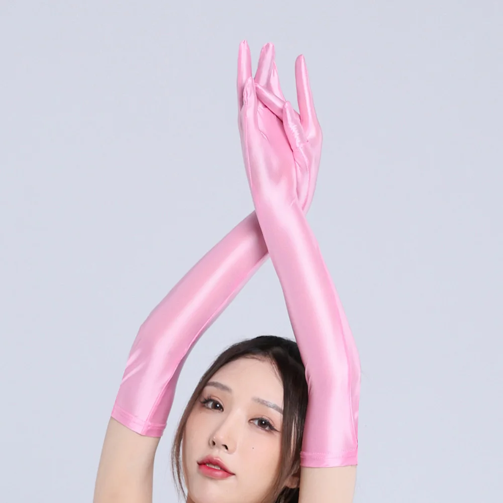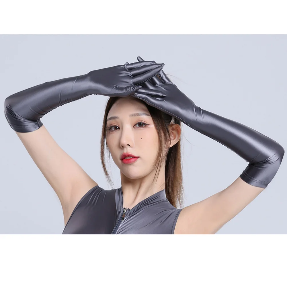 Sexy Lingerie Women Smooth Shiny Elastic Long Gloves Oil Silky Driving Nightclub Mittens High Elastic