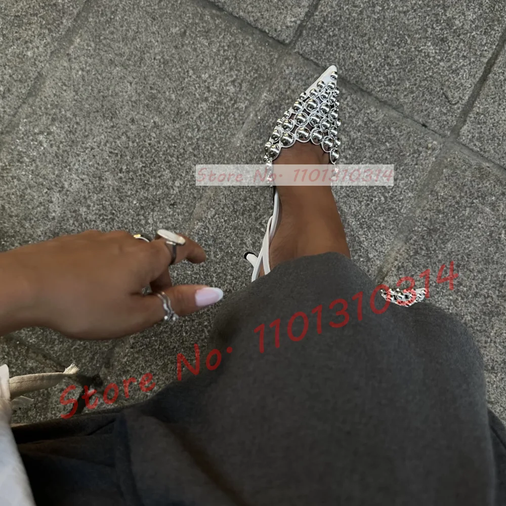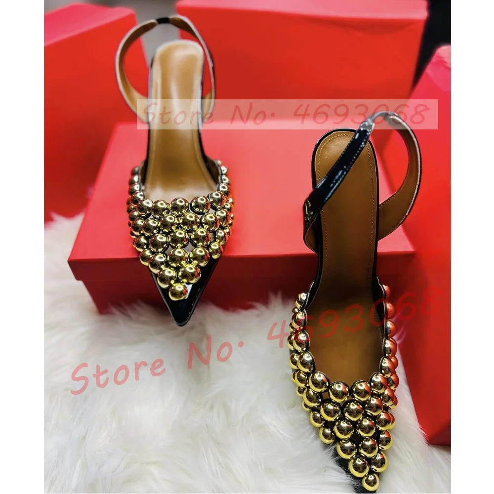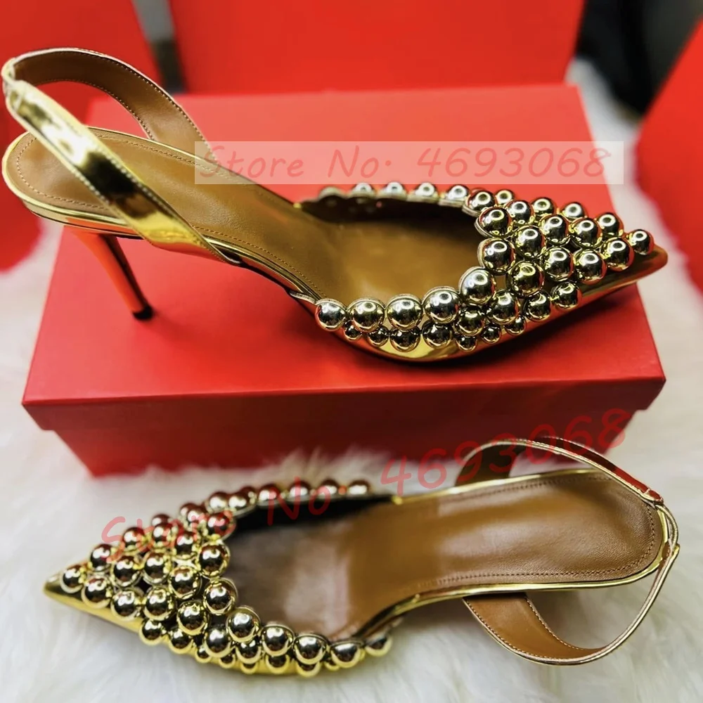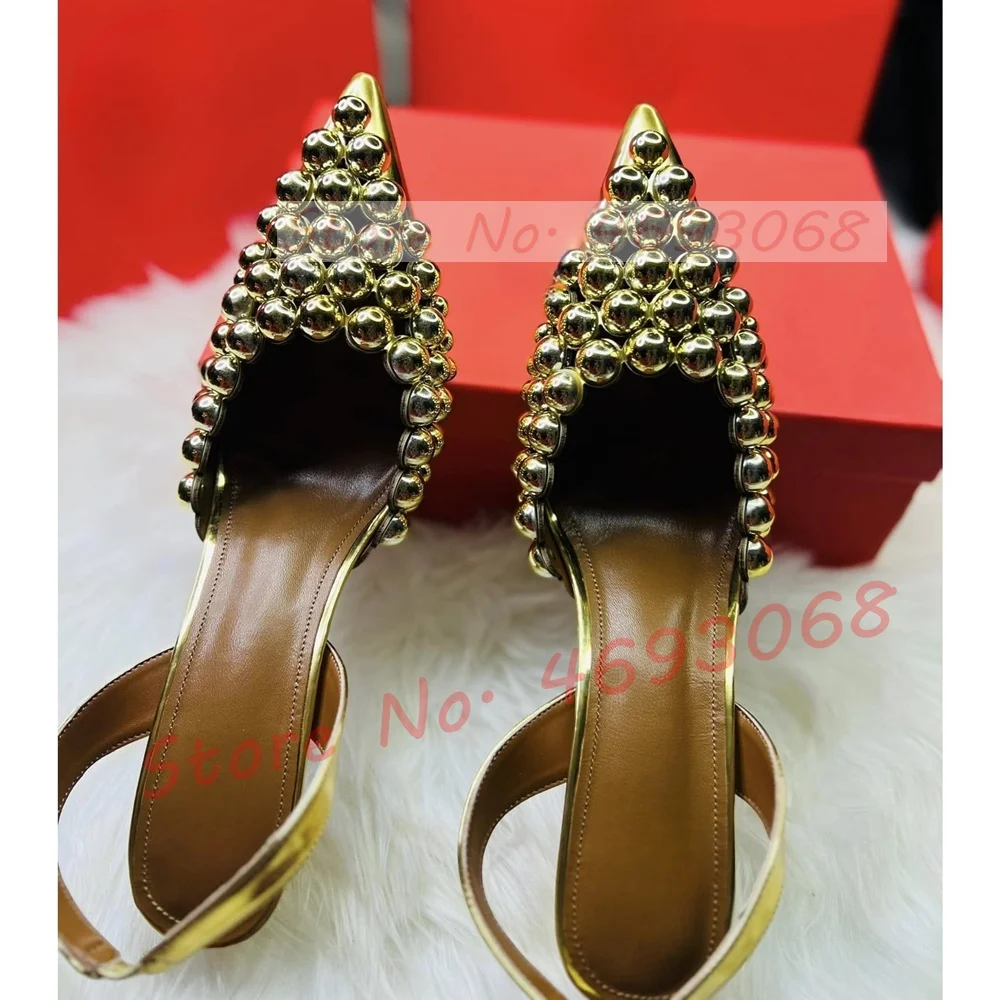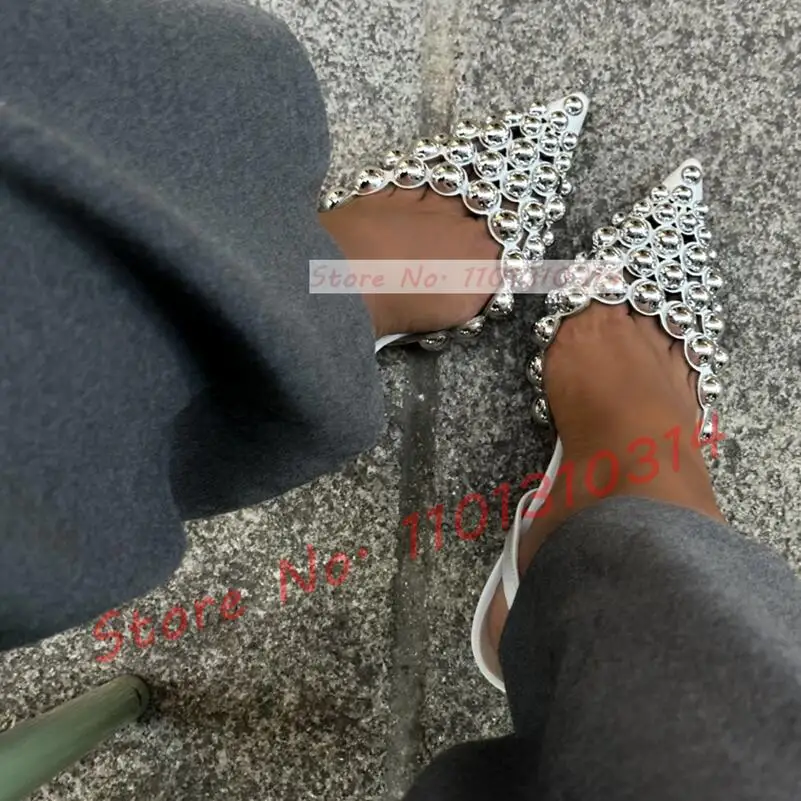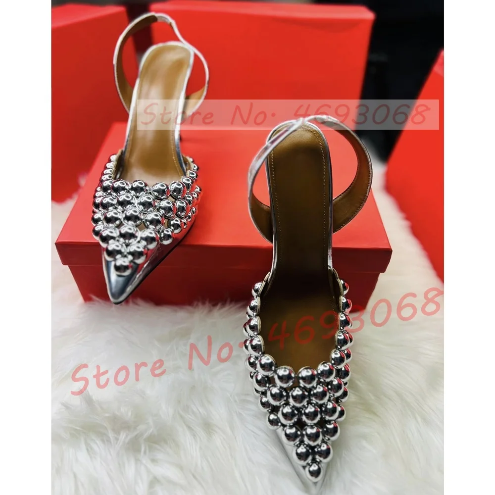 Sexy Pointed Toe Sandals With Metal Ball Spikes Women Bling Slingback Stiletto Sandals Ladies Summer Studded Buckle Straps Shoes