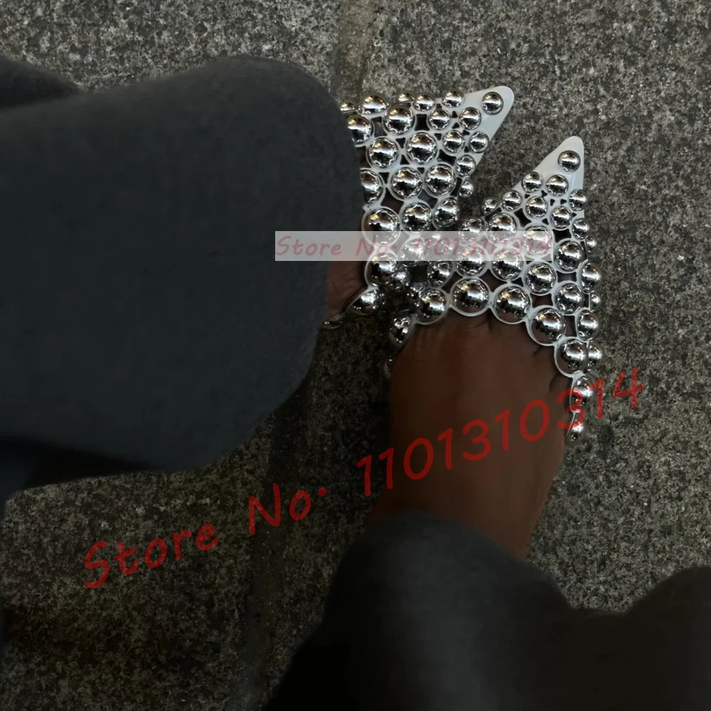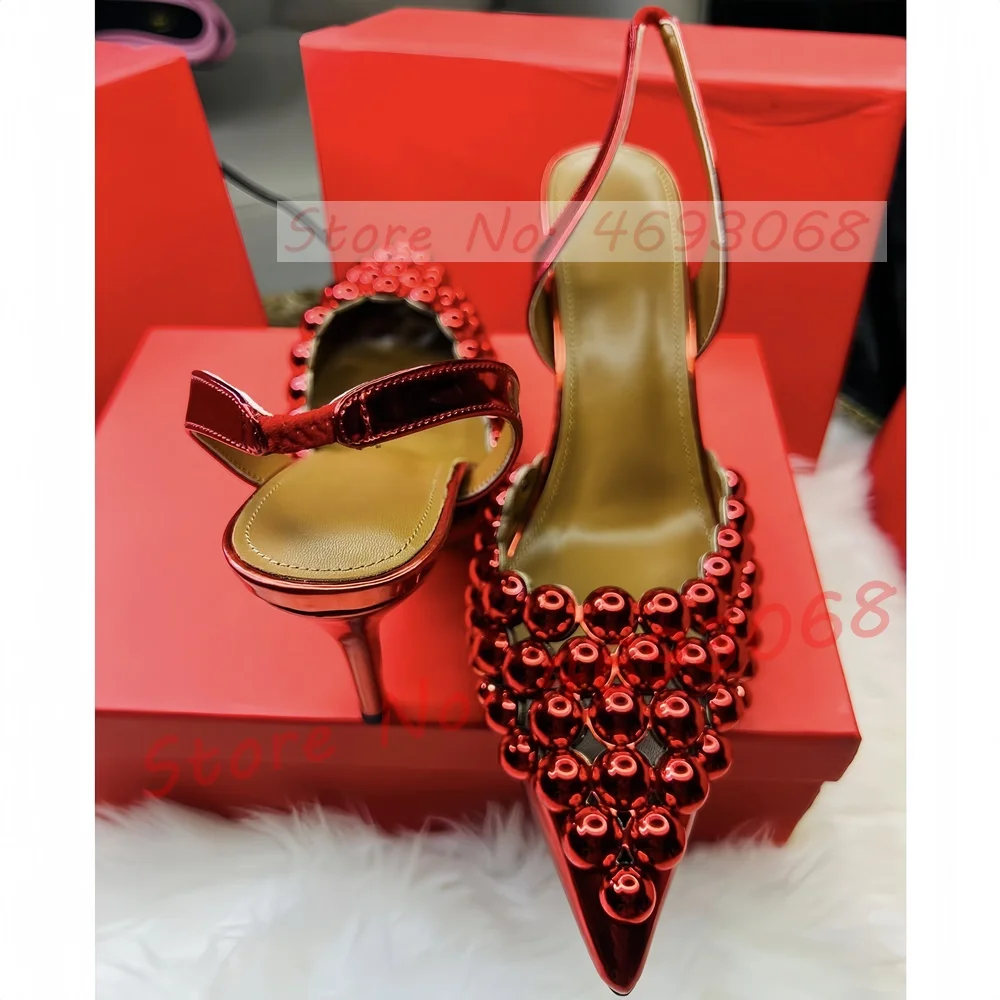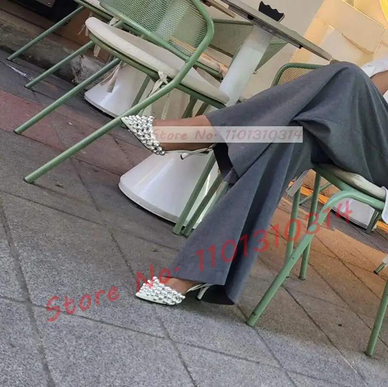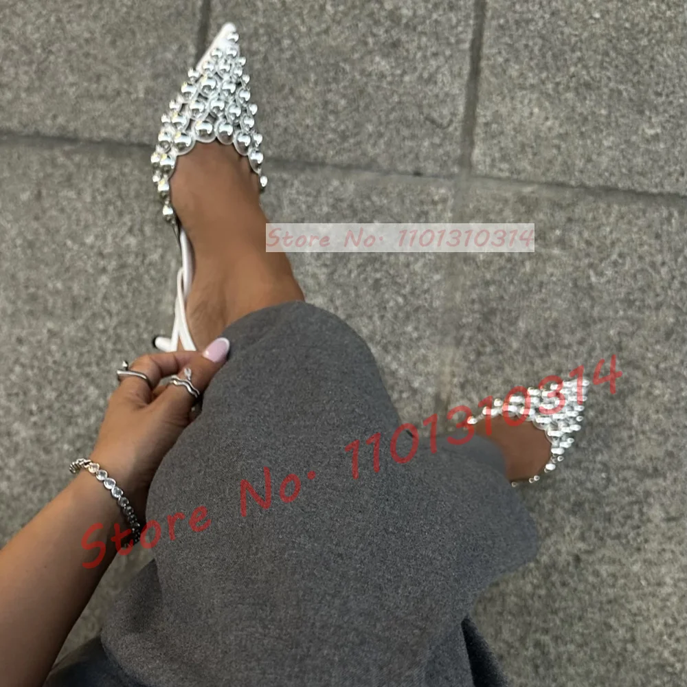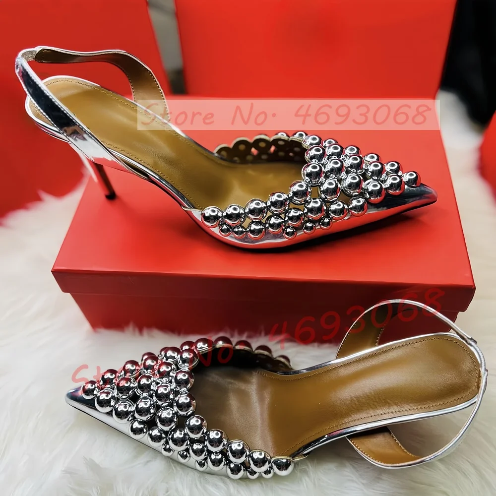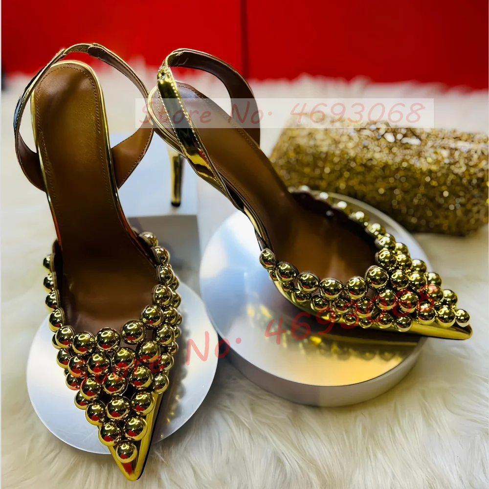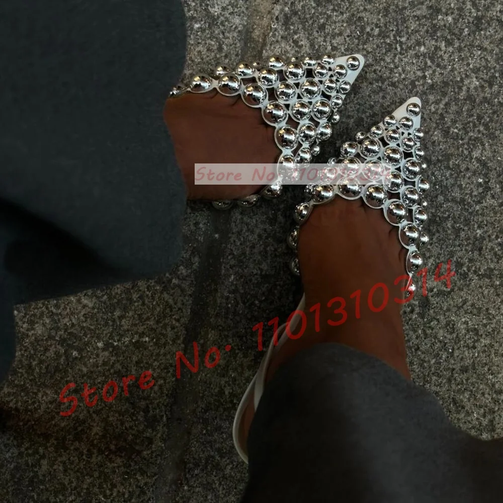 Sexy Pointed Toe Sandals With Metal Ball Spikes Women Bling Slingback Stiletto Sandals Ladies Summer Studded Buckle Straps Shoes