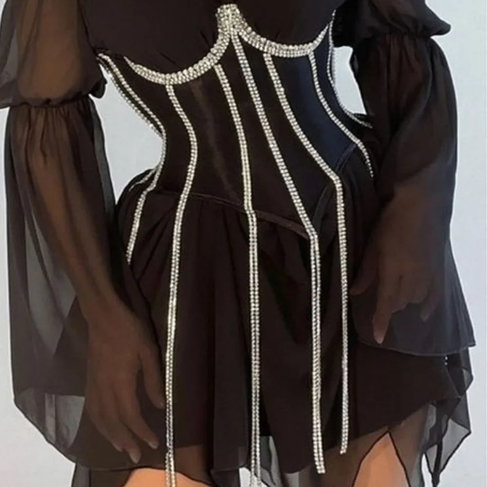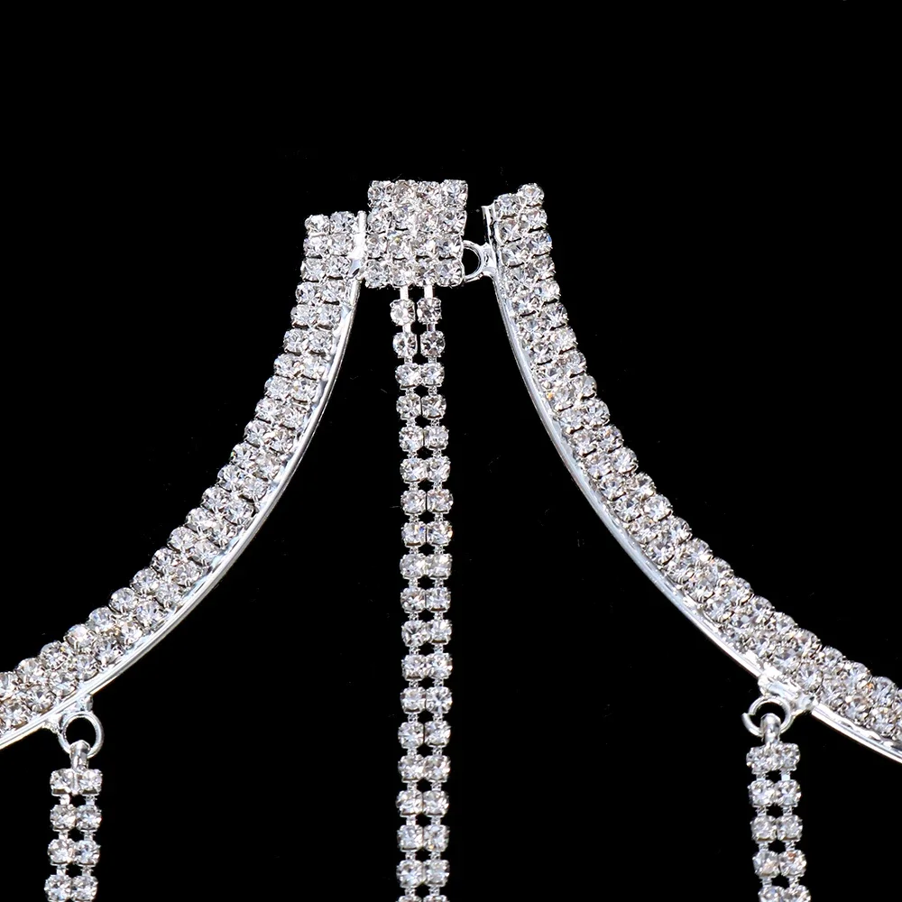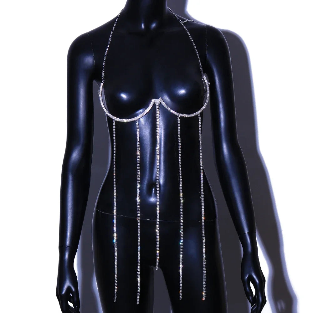 Sexy Tassel Chest Chain Rhinestone Chest Bracket for Women Rave Bikini Semicircle Crystal Lingerie Chain Bra Jewelry Gift