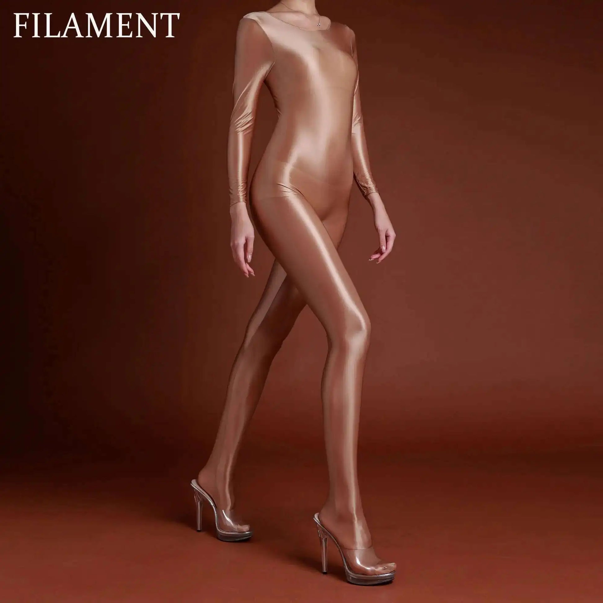 Sexy Women Shiny Glossy Jumpsuit Zentai Suit Lingerie Fitness Bodycon Sleeping Onesies Underwears