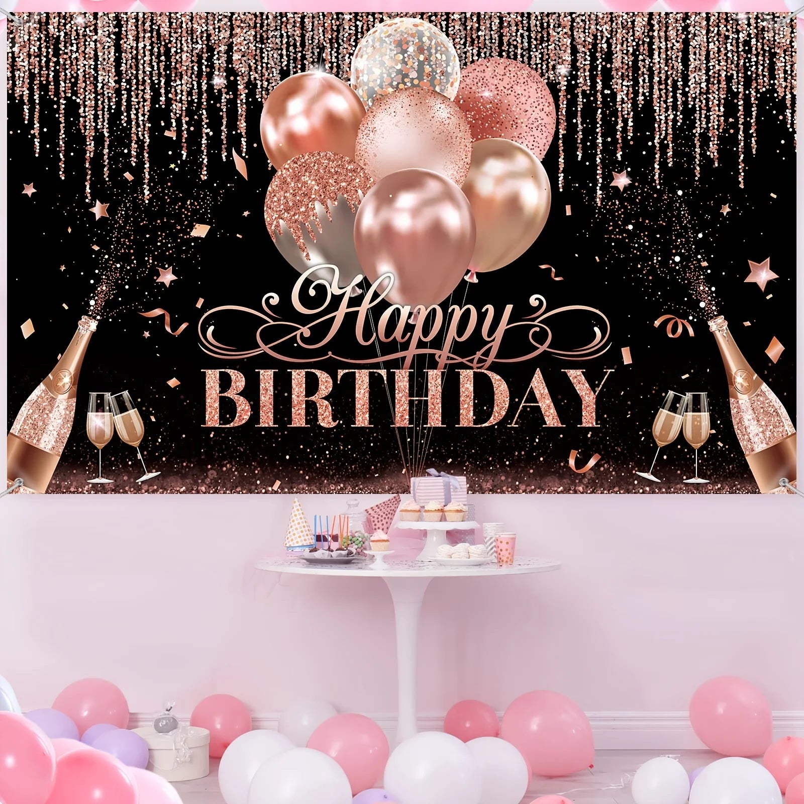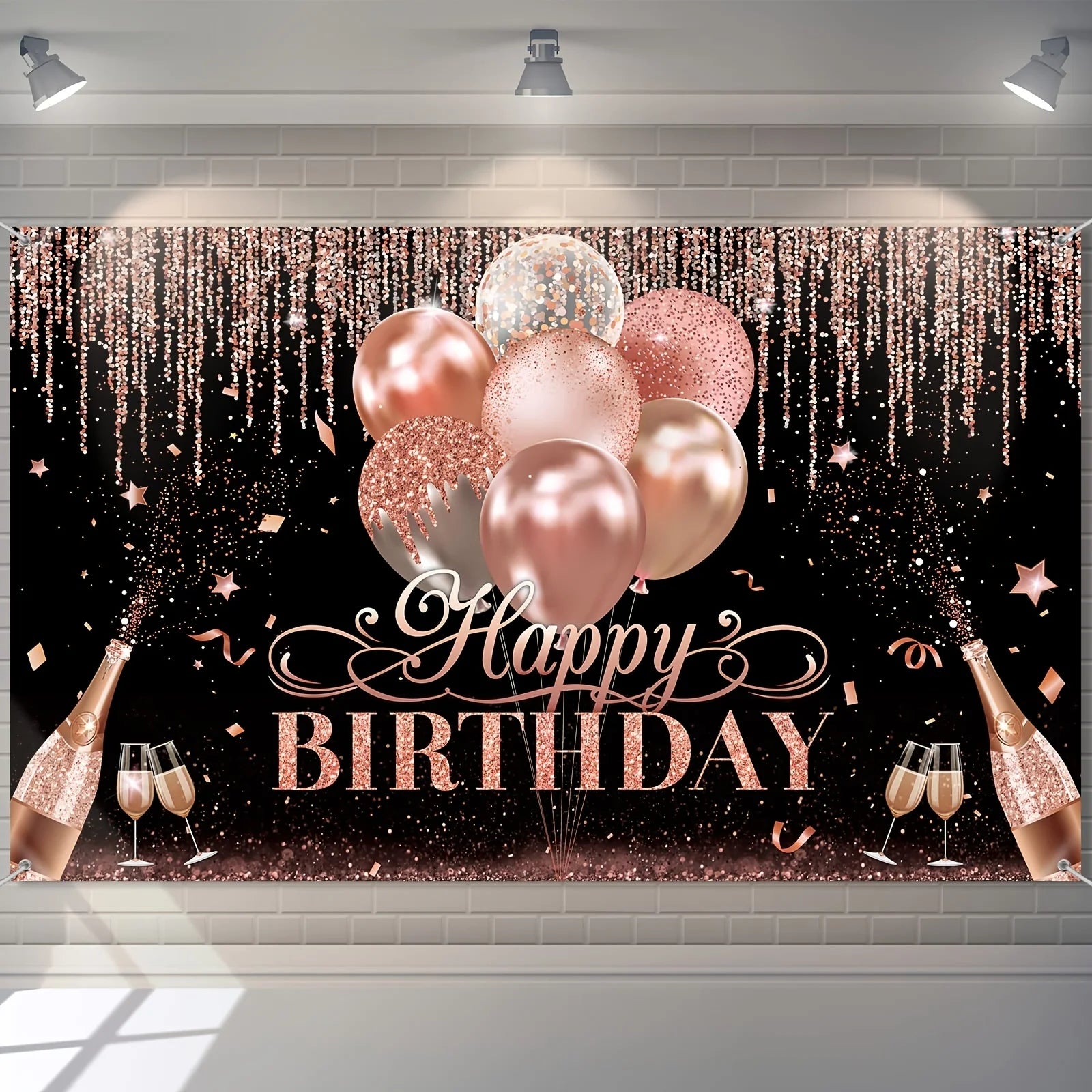 Shiny Balloon Glitter Pink Background Cloth Happy Birthday Party Baby Shower Decoration Arrangement Banner Photography Props