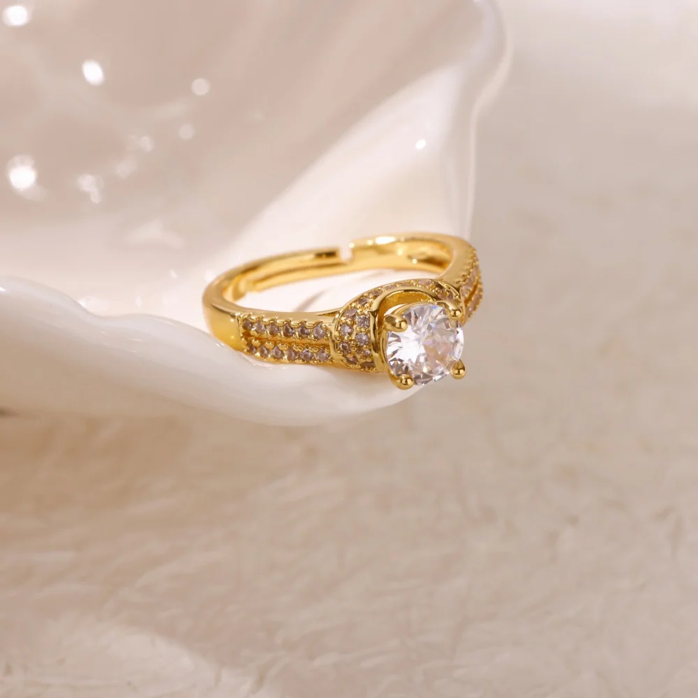 Shiny Zircon Stainless Steel Trendy Ring for Women Opening Adjustable Creative Finger Ring Waterproof Wedding Party Jewelry 2025