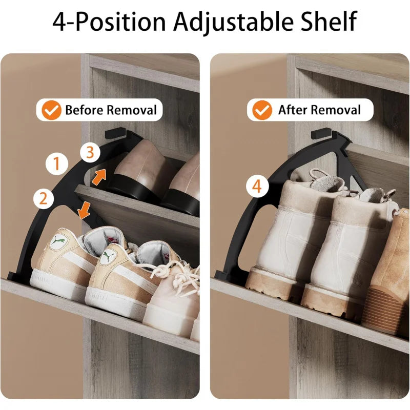 The center divider can be adjusted or removed to accommodate shoes of varying heights and sizes.