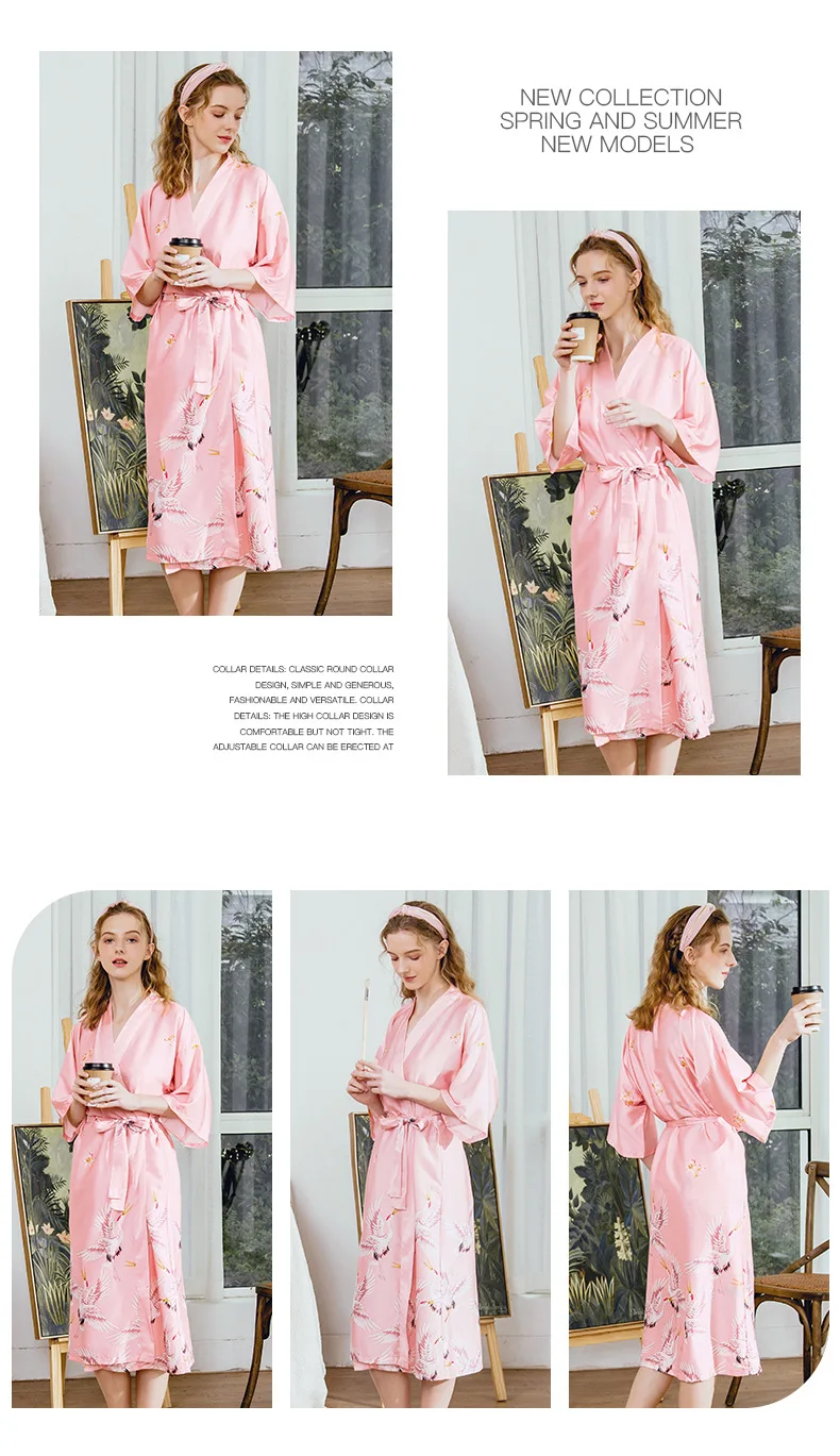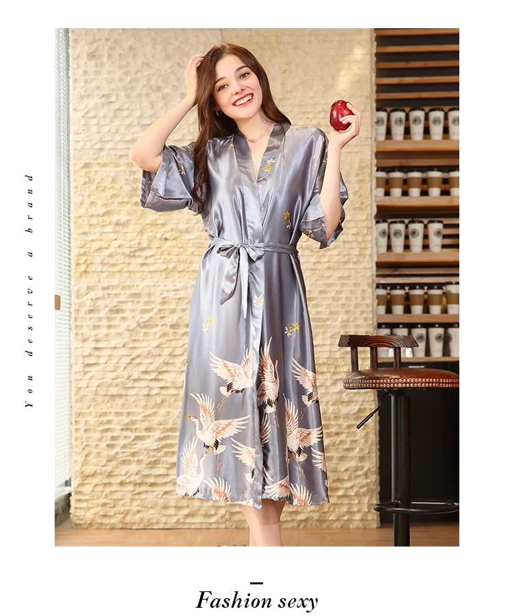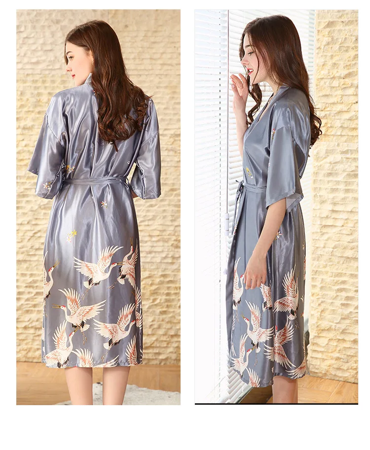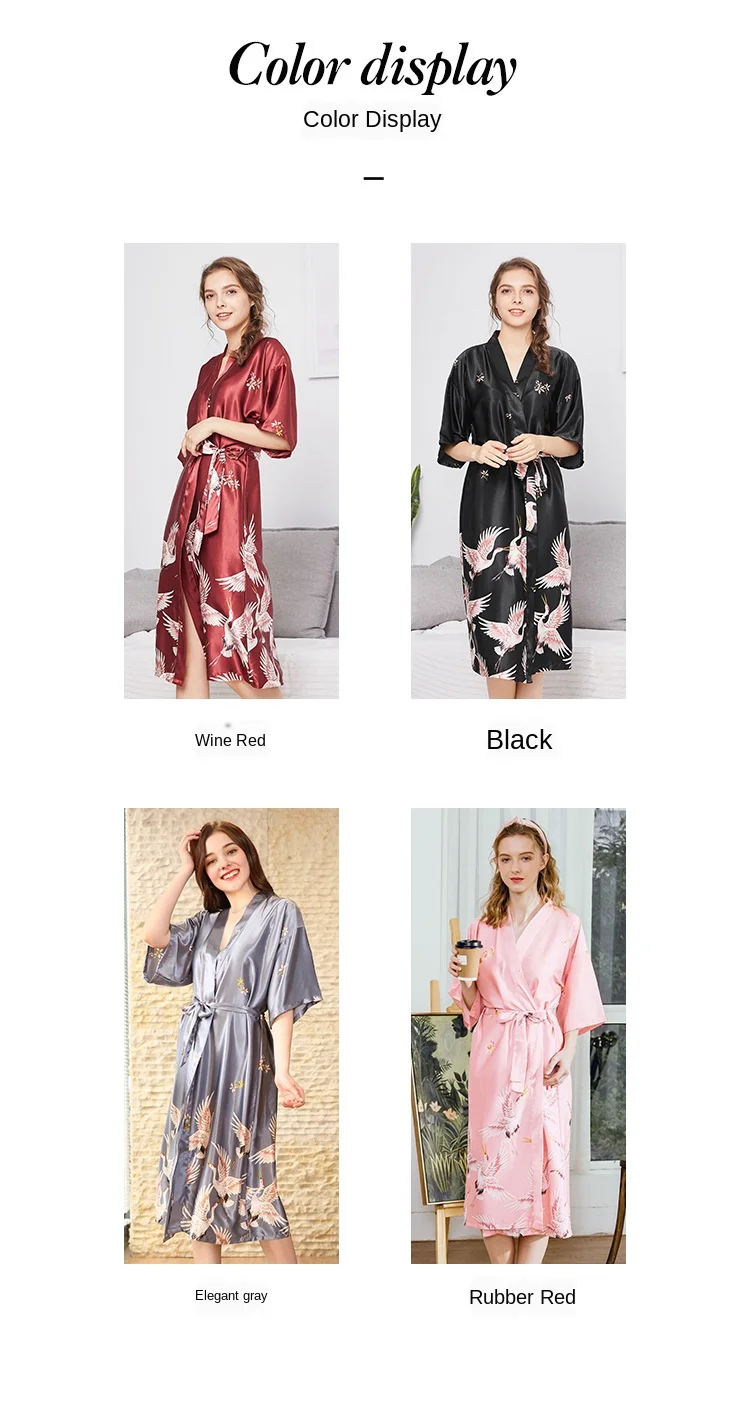 Silk Kimono Robe Bathrobe Women Satin Silk Robes Night Sexy Robes Night Grow Bath Robe Bathrobe Lingerie Robe
