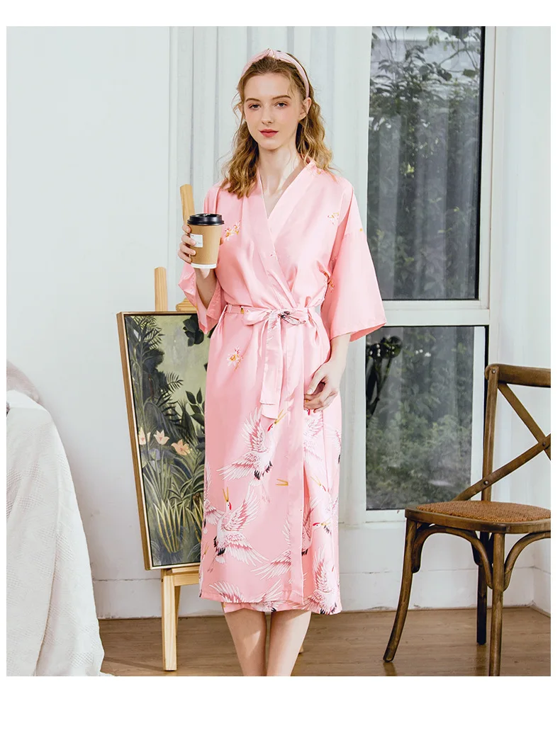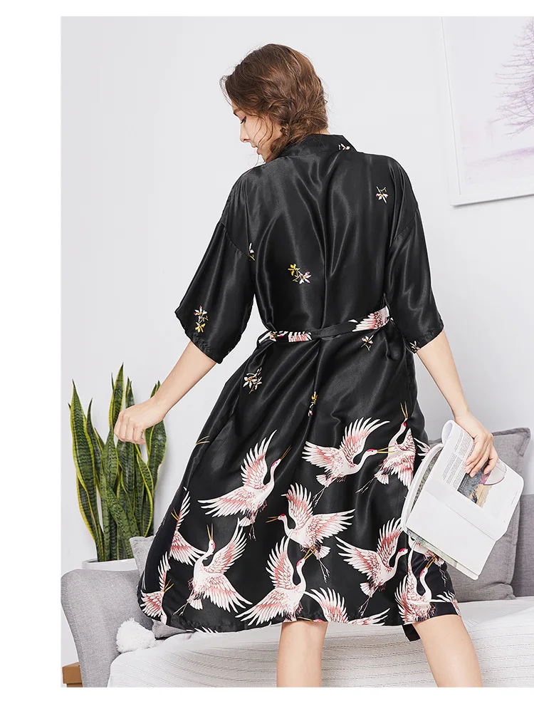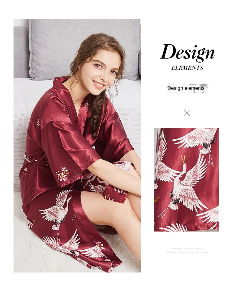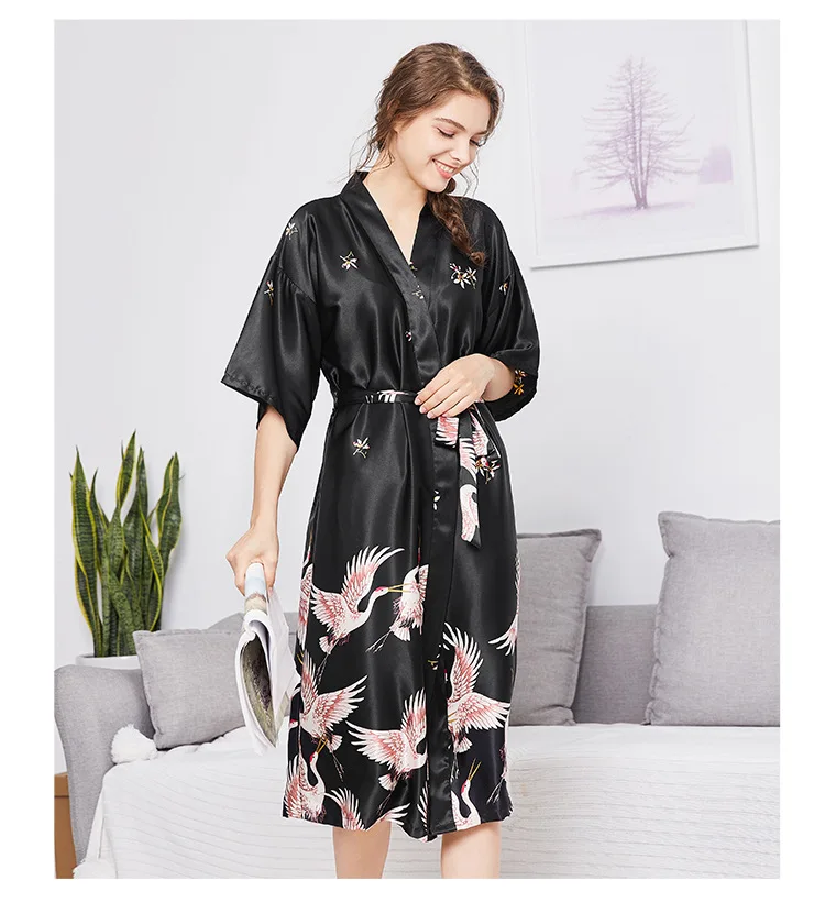 Silk Kimono Robe Bathrobe Women Satin Silk Robes Night Sexy Robes Night Grow Bath Robe Bathrobe Lingerie Robe