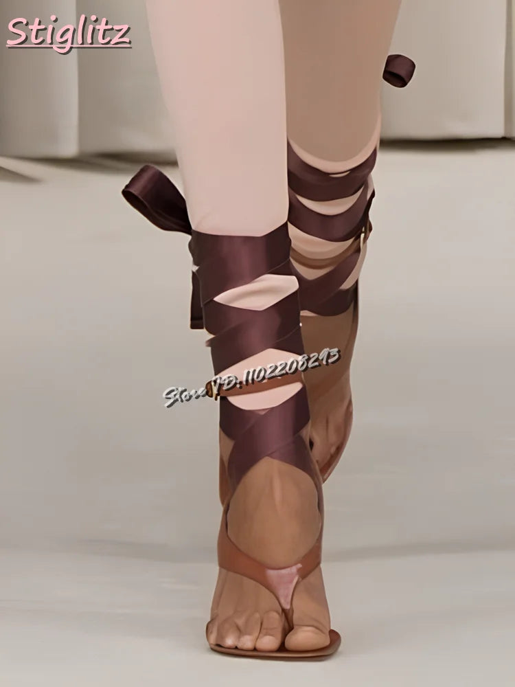 Silk Satin Cross-tied Sandals Clip-Toe Lace-up Flip-flop High Heels Riband Elegant Dress Shoes 2025 Summer New Fashion Women