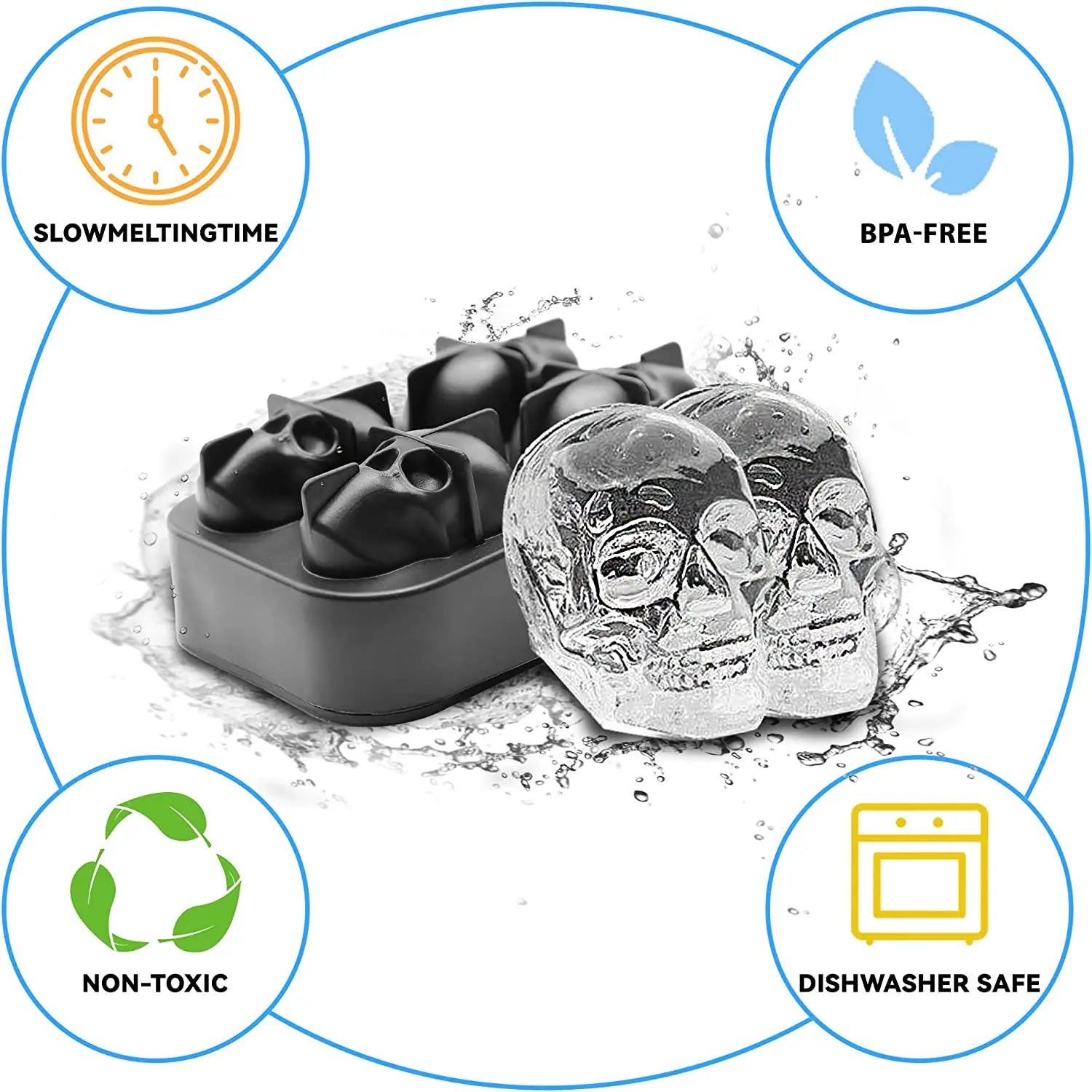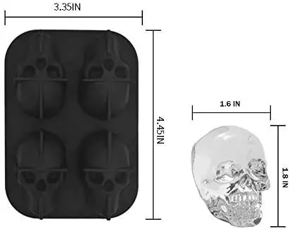 Skull Mold DIY 3D Easy Release Silicone Ice Mold 4 Skulls,for Christmas,Halloween Decor, Whiskey, Cocktails,Gift For Dad(Black)