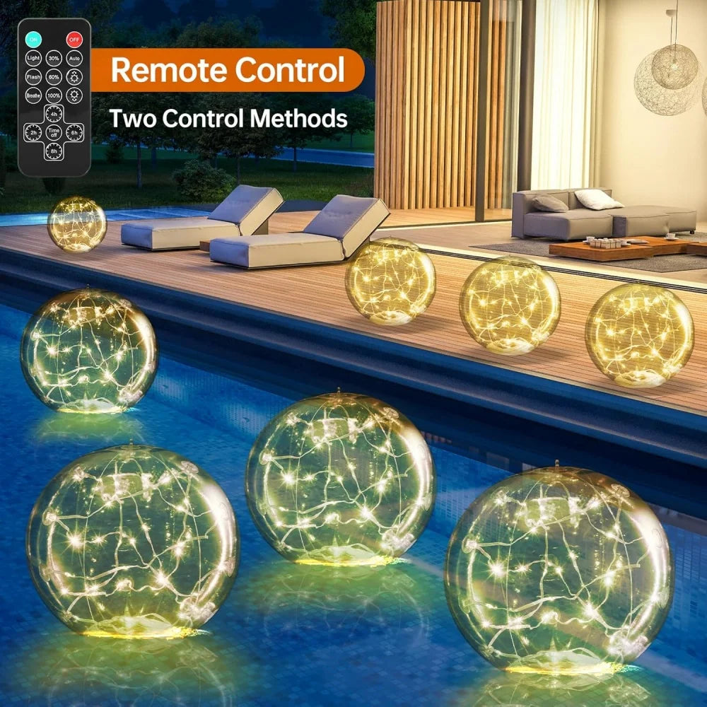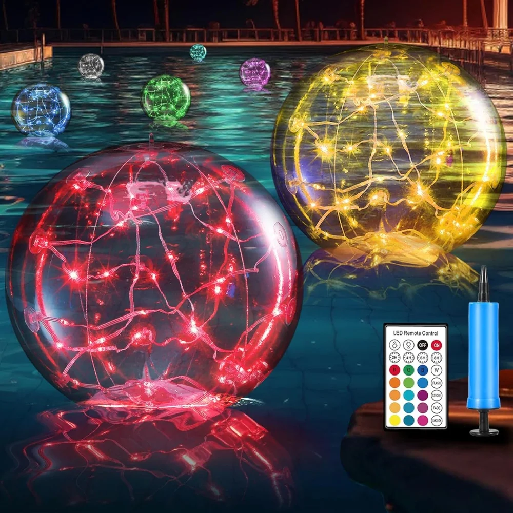 Solar Floating Pool Lights 34cm Large Inflatable Pool Beach Ball For Water Pool Party Outdoor Balloon LED Garden Ball Light