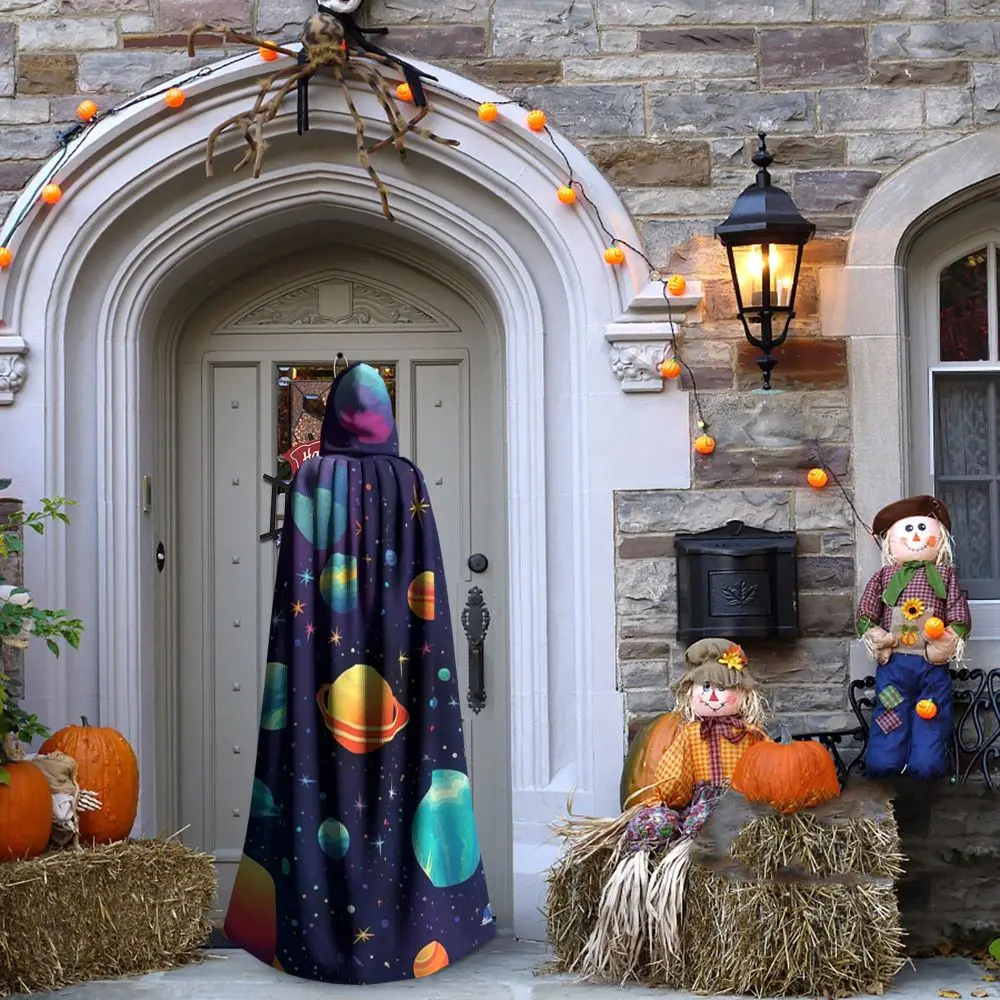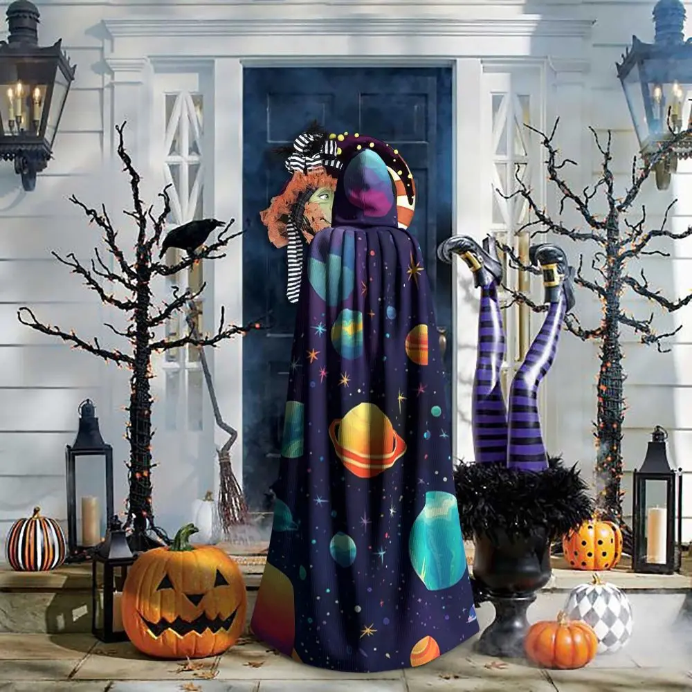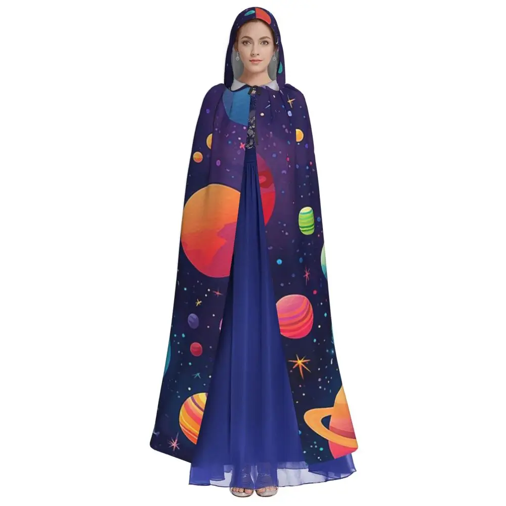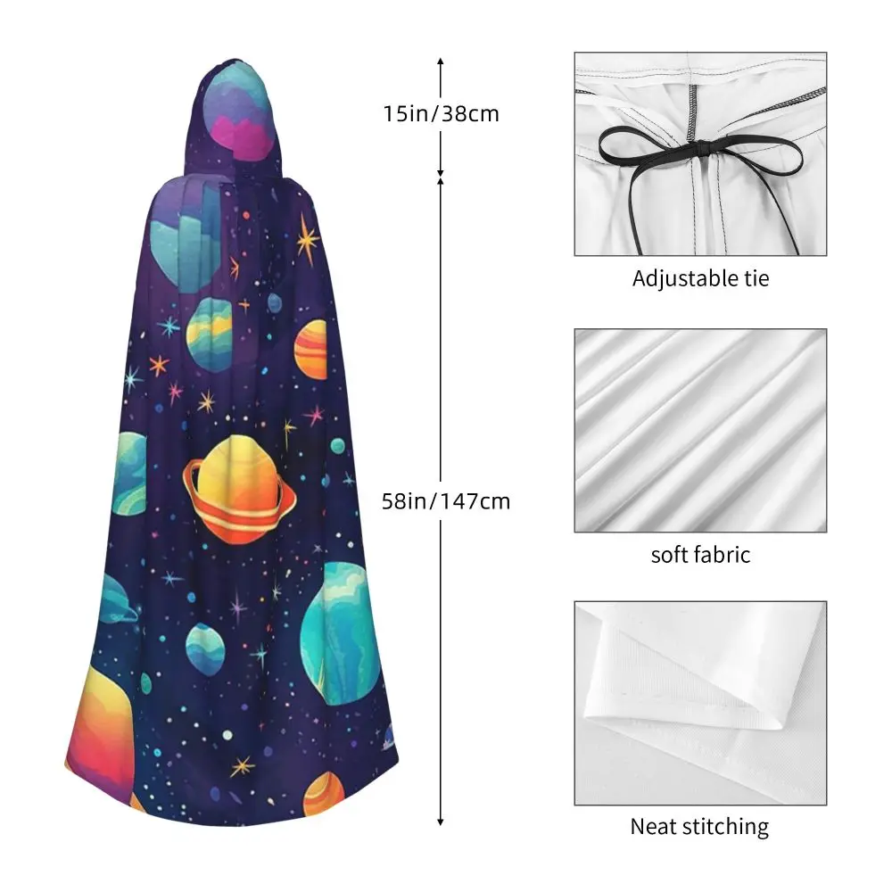 Solar System Space Planets Universe Long Hooded Cloak Witch Medieval Costume Cosplay Cape HalloweenVampire Adult Unisex