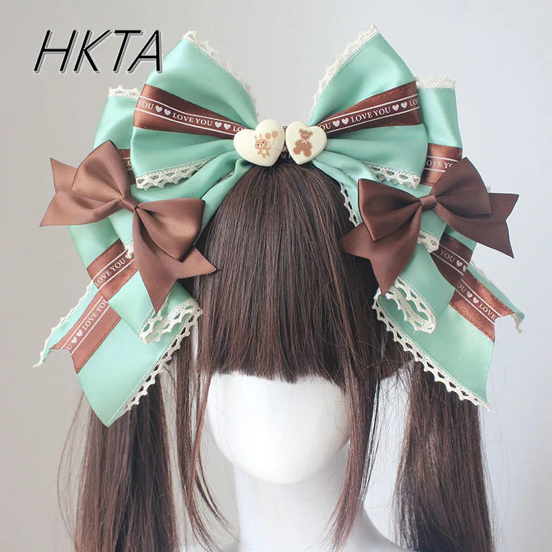 Spring Summer Cute Sweet Hair Clips for Women Bow Headwear Thin Lolita Ladies Hair Clips KC Hair Bow Lolita Korean Accessories