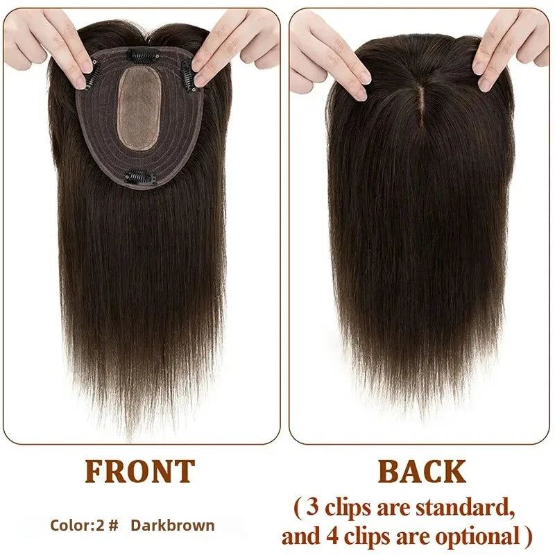 Straight Silk Top Base Topper Swiss Lace Clip In Women Toupee With Bangs Breathable 100% Real Human Hairpiece Blonde Color Wigs