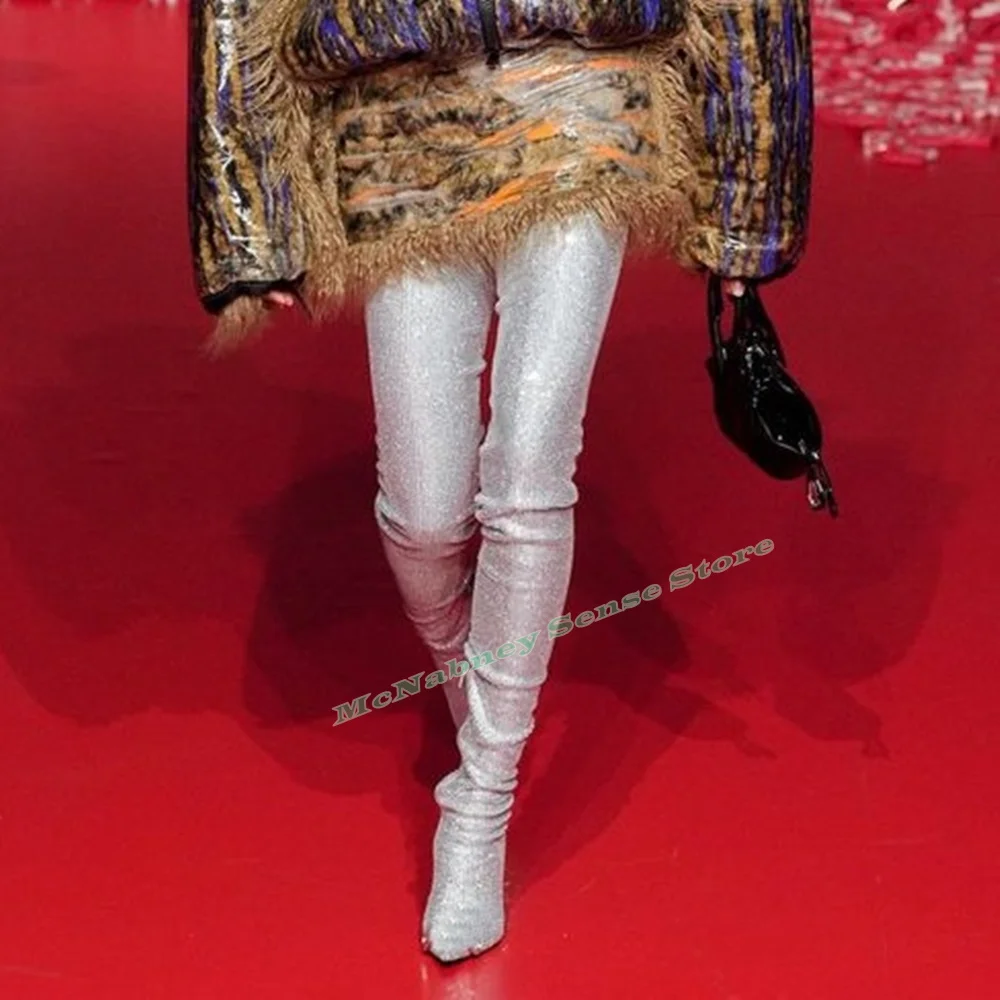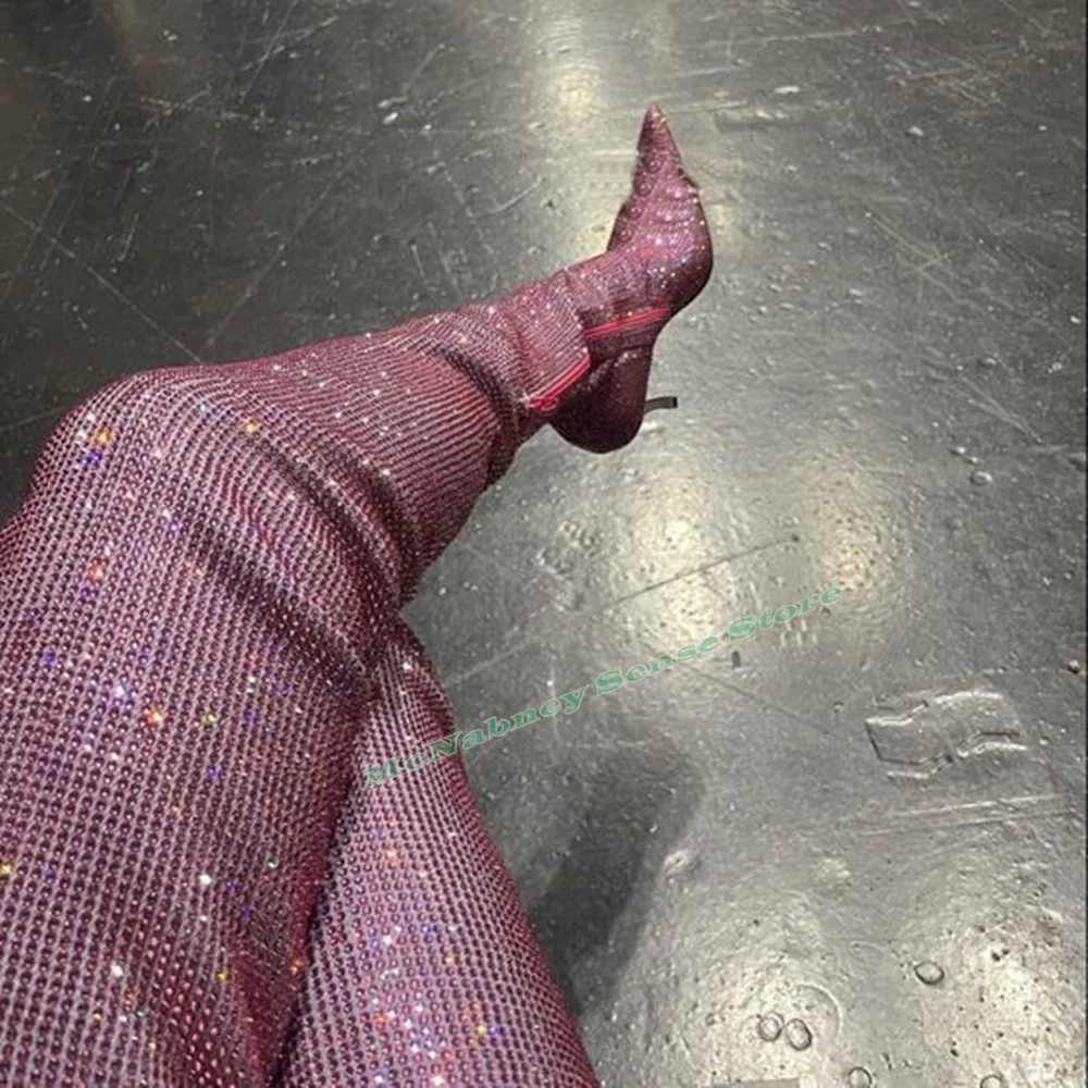 Studded Bling Thigh High Boots Pointed Toe Solid Crystal Stiletto Heels Long Boots Side Zipper New Style Women Shoes Fashion