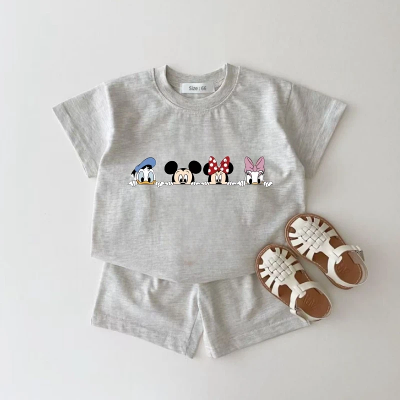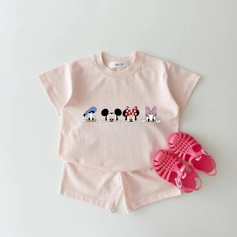 Summer Baby Boy Cotton Clothes Set Kid Girls Disney Mickey Printed T-shirts and Shorts 2pcs Suit Children Short Sleeve Outfits