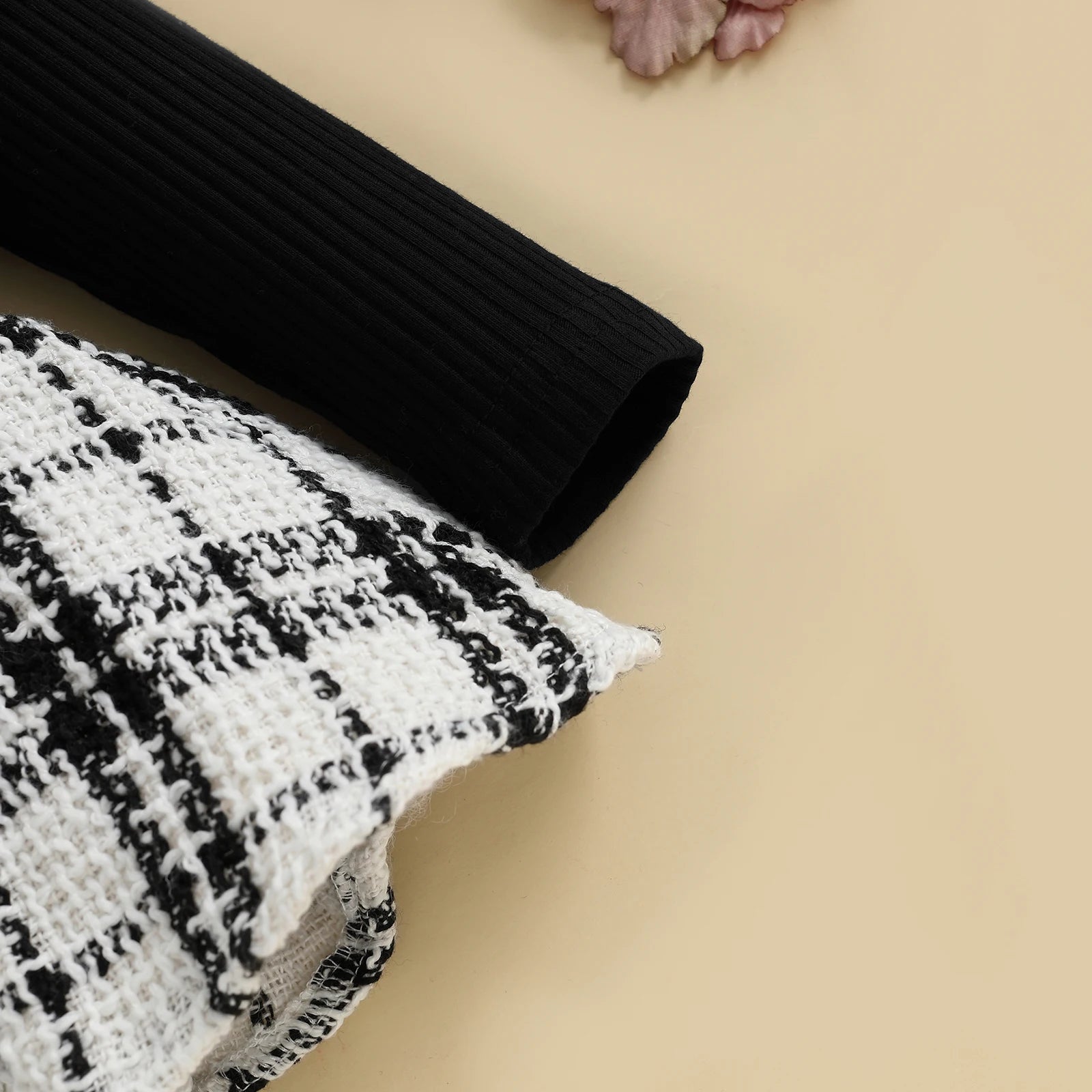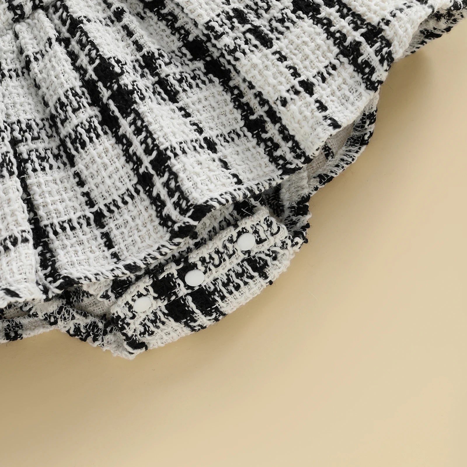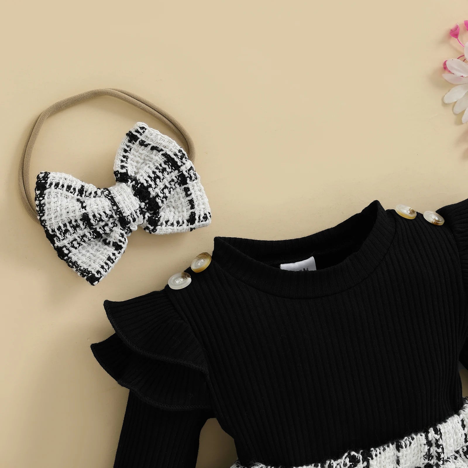 Baby Girl Fall Outfits Long Sleeve Plaid Print Skirt Bodysuit with Headband Socks Set Infant Clothes