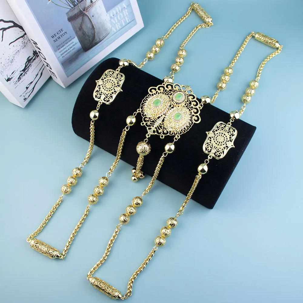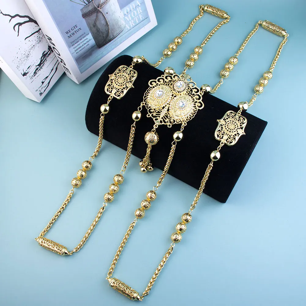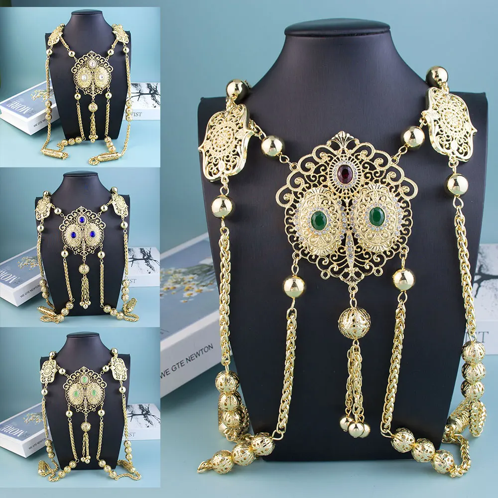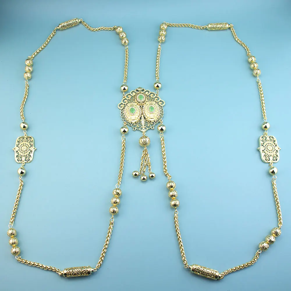 Sunspicems Chic Moroccan Bride Body Jewelery Algeria Women Back Shoulder Chain Gold Color Arabic Wedding Jewelry Long Necklace