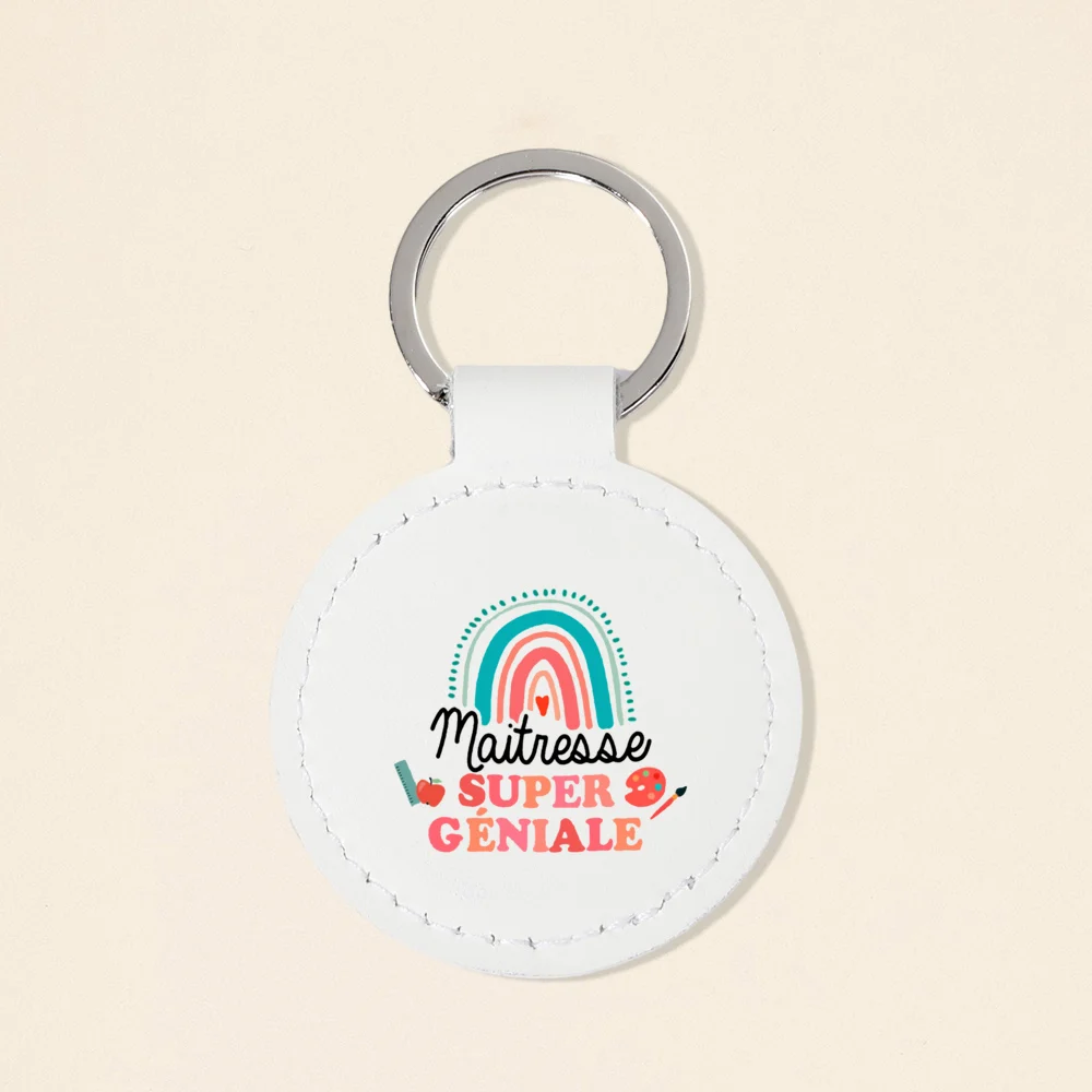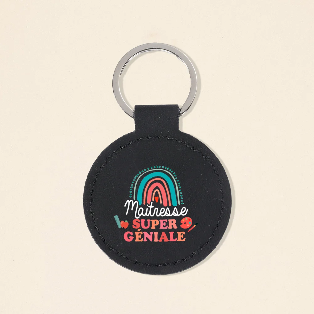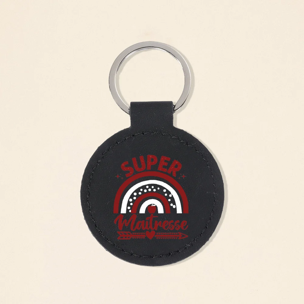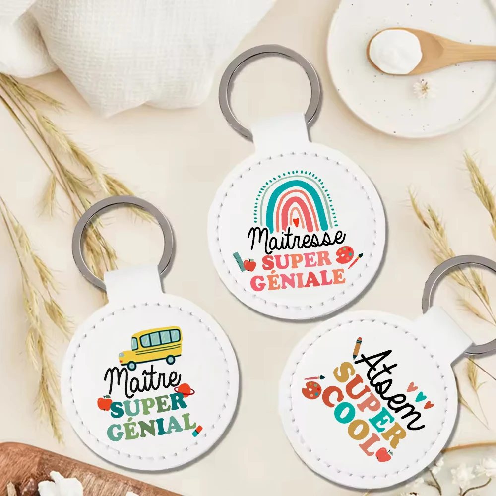 Super Atsem Maitre Maitresse Print Keychain Leather Circle Keyring Teacher Life Key Chain Teacher's Day Thanks Gift for Teacher