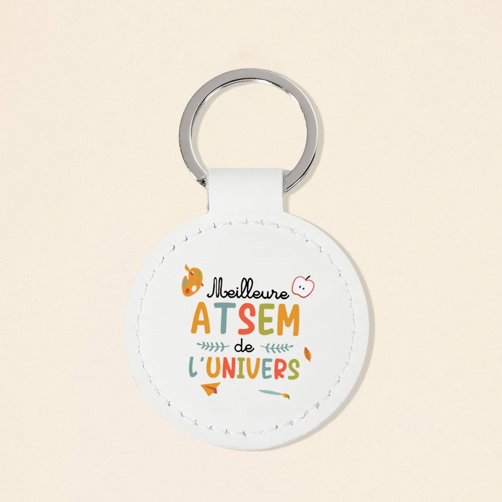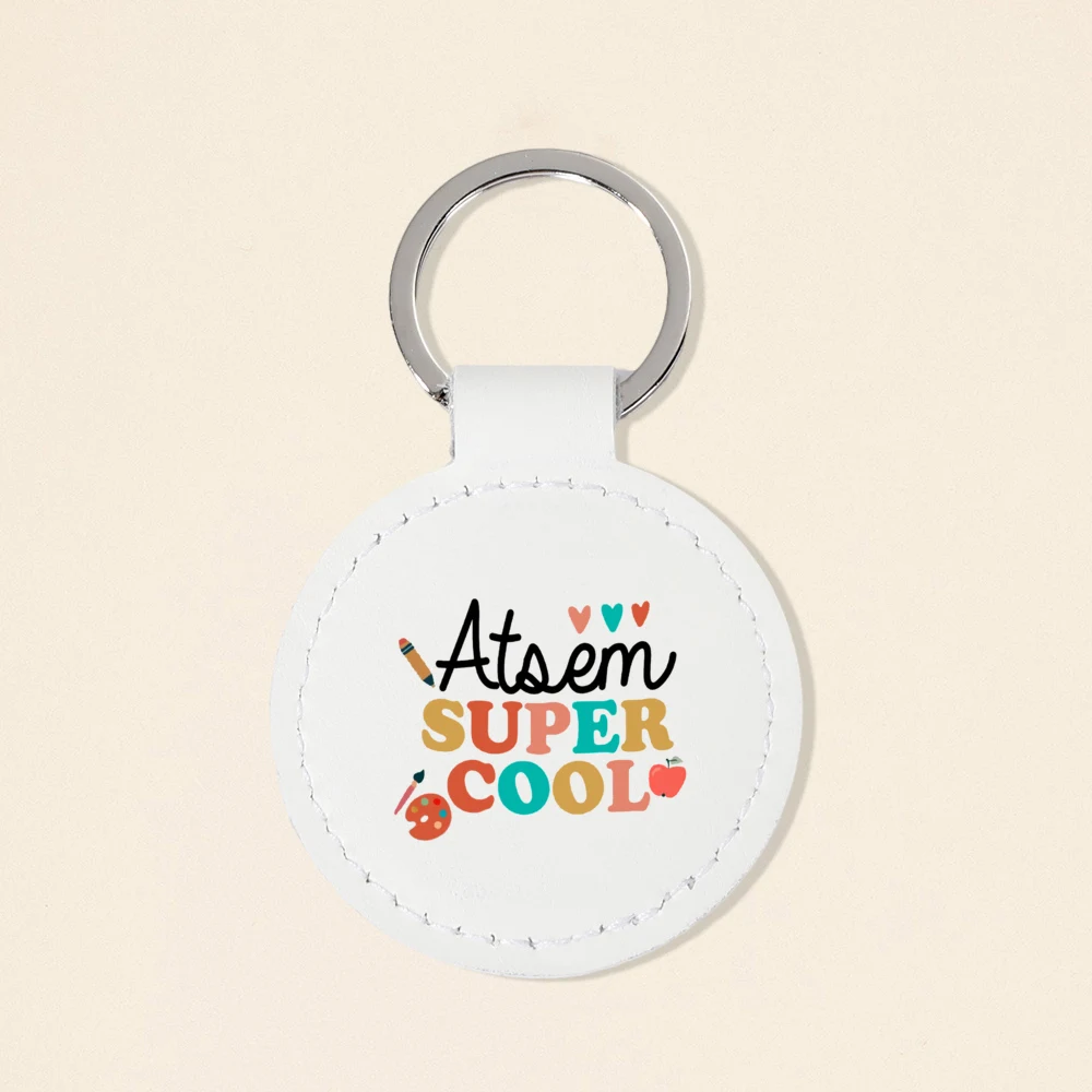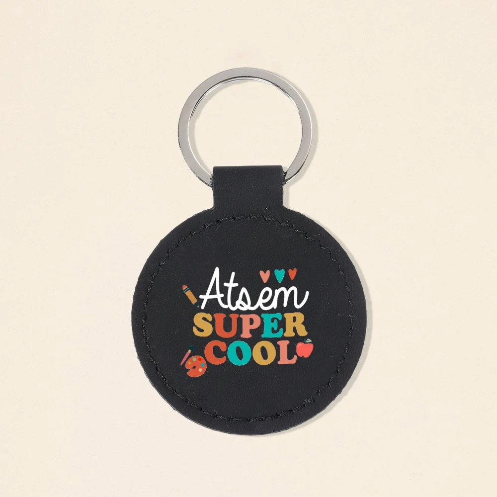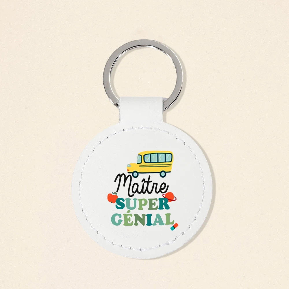 Super Atsem Maitre Maitresse Print Keychain Leather Circle Keyring Teacher Life Key Chain Teacher's Day Thanks Gift for Teacher