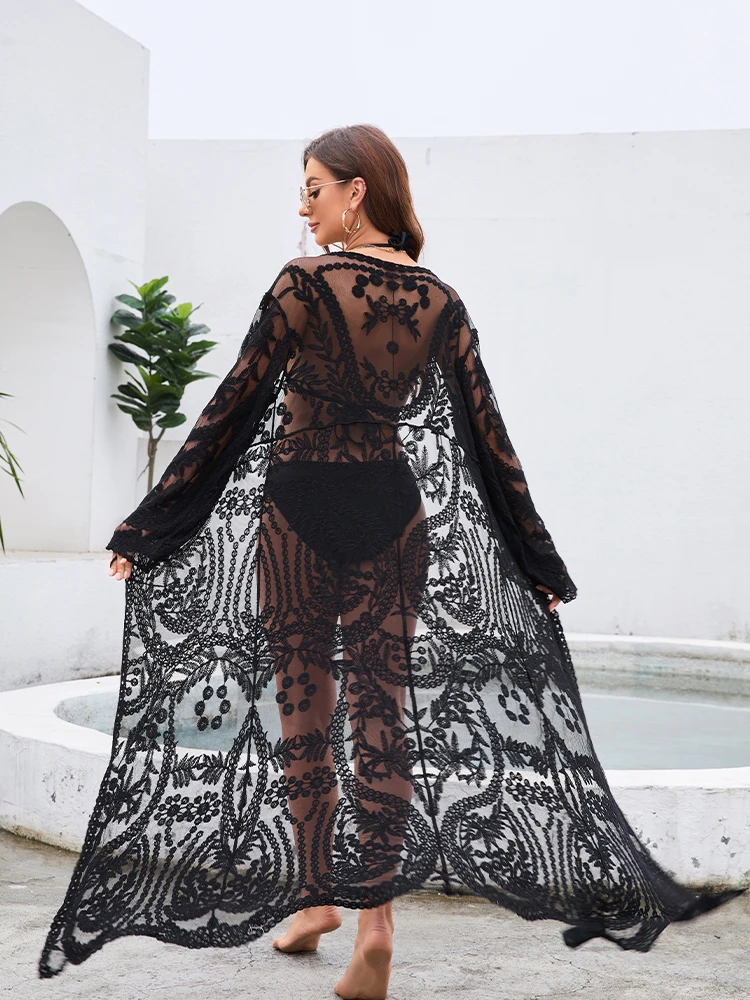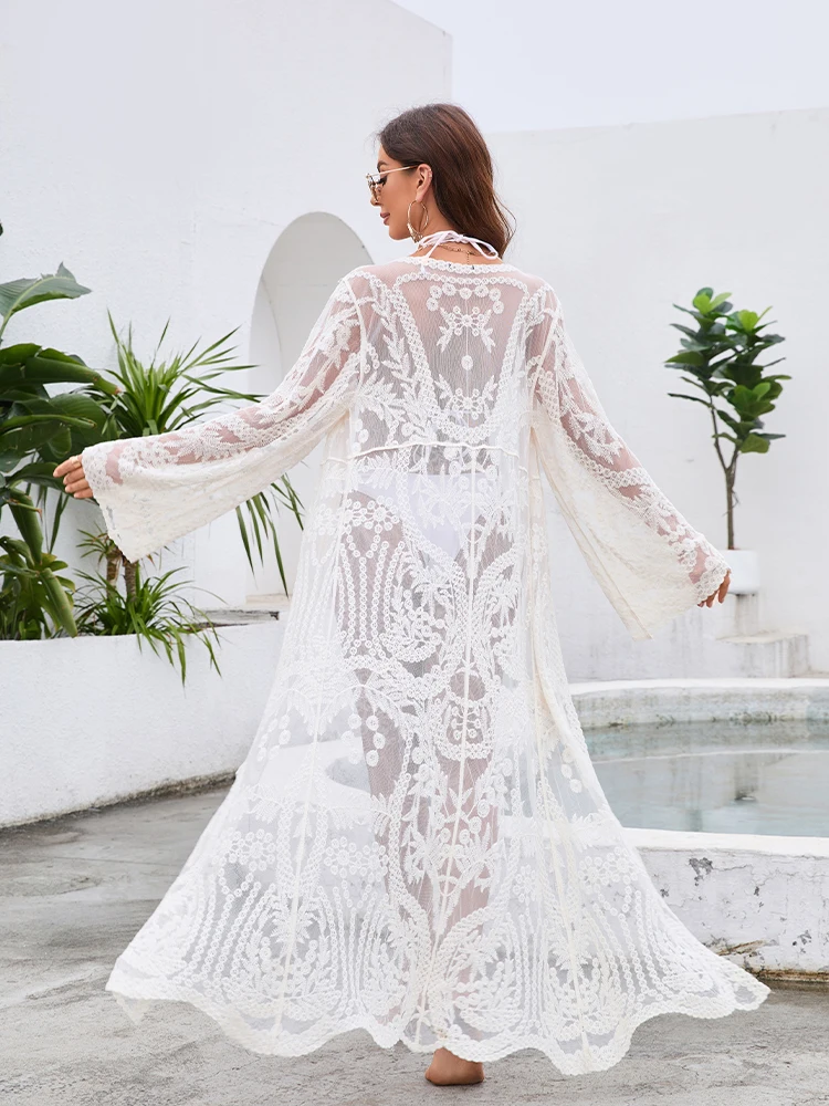 Thin Europe Style Embroidery Cardigan Beachwear Hollow Out Coat Women Clothing Basic Cover Up Fashion Streetwear Clothes Casual