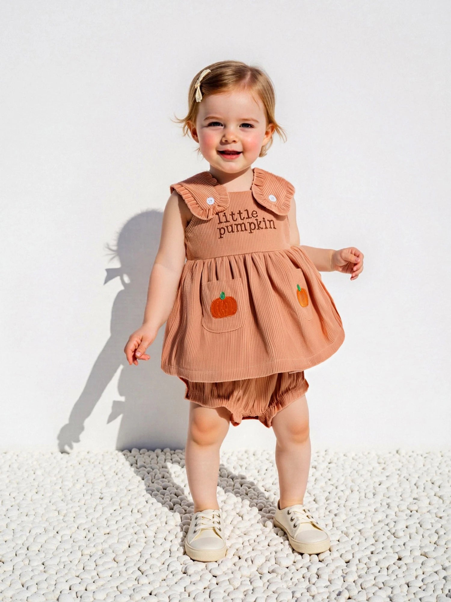 Toddler Baby Girl Halloween Outfit Pumpkin Letter Sleeveless Babydoll Tops Bow Elastic Waist Ruffle Shorts 2 Piece Set