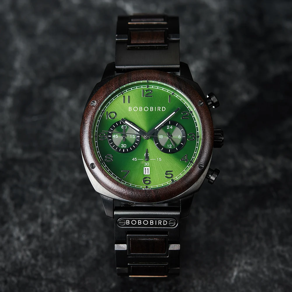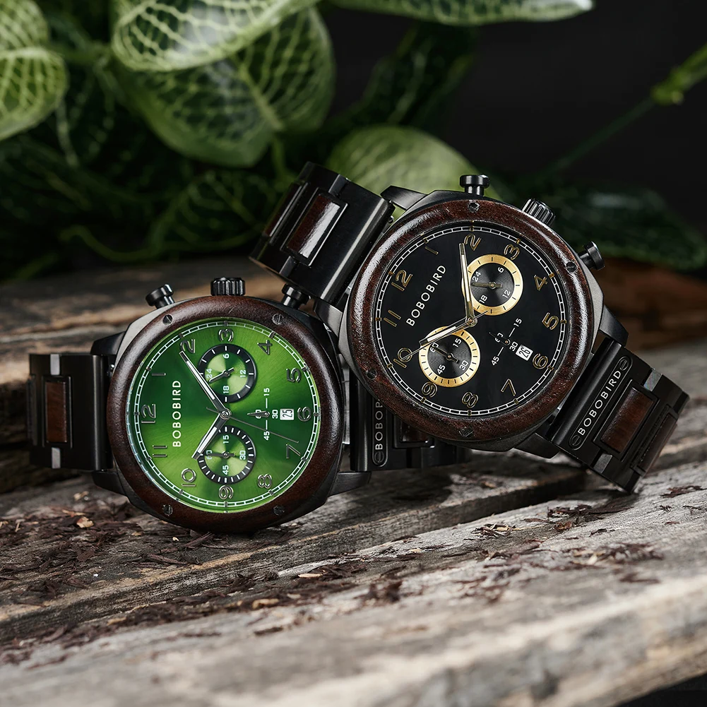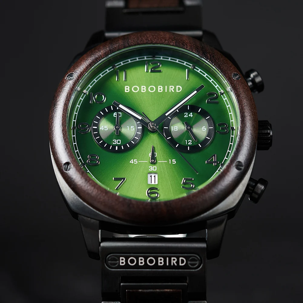 Top Brand Luxury reloj hombre BOBO BIRD 3AT Waterproof Chronograph Wristwatch With Calendar Luminous Hands Halloween Gifts