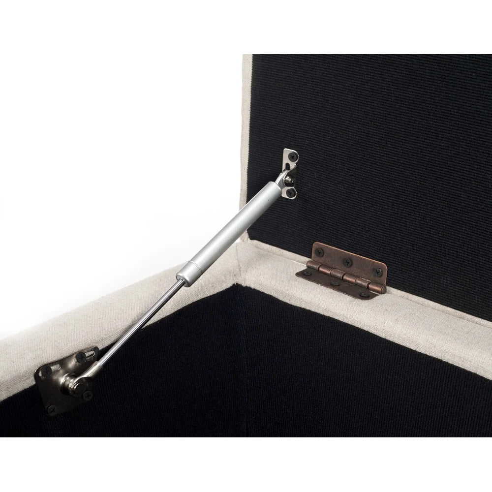 With its seductive silhouette, the Aroura Storage Bench is enveloped in chic, feminine style. Covered in sophisticated beige linen weave fabric, Auroua sits graciously atop ample black legs sturdy enough to hold everything you stow inside.