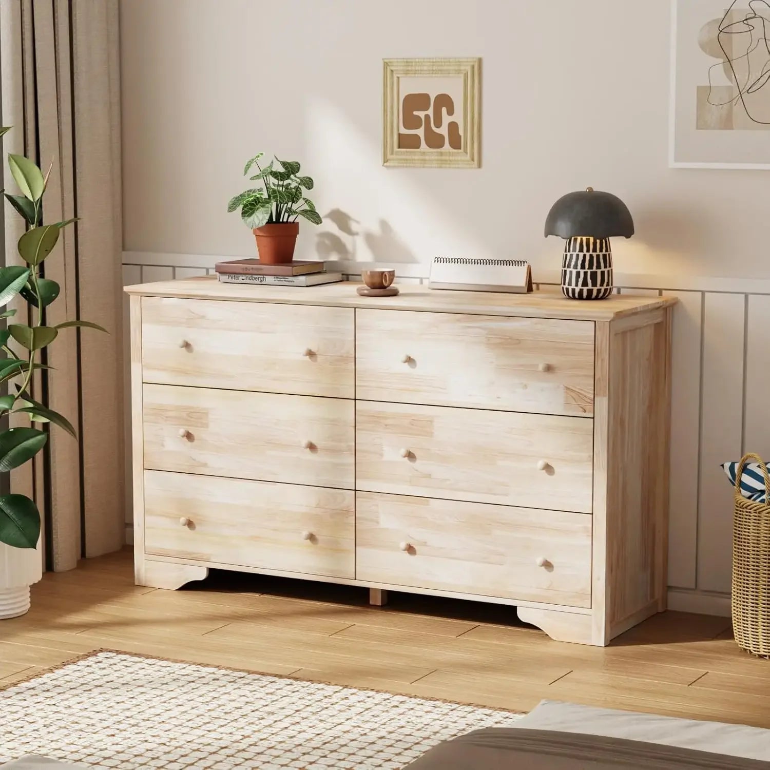 - 【Larger & Deeper Drawers】Drawer internal dimension: 24.4W x 13.2"D x 7"H. The natural dresser boasts 6 spacious drawers, which offer ample storage space to store more items in a smaller footprint. This is especially beneficial if you have limited small space in your room.