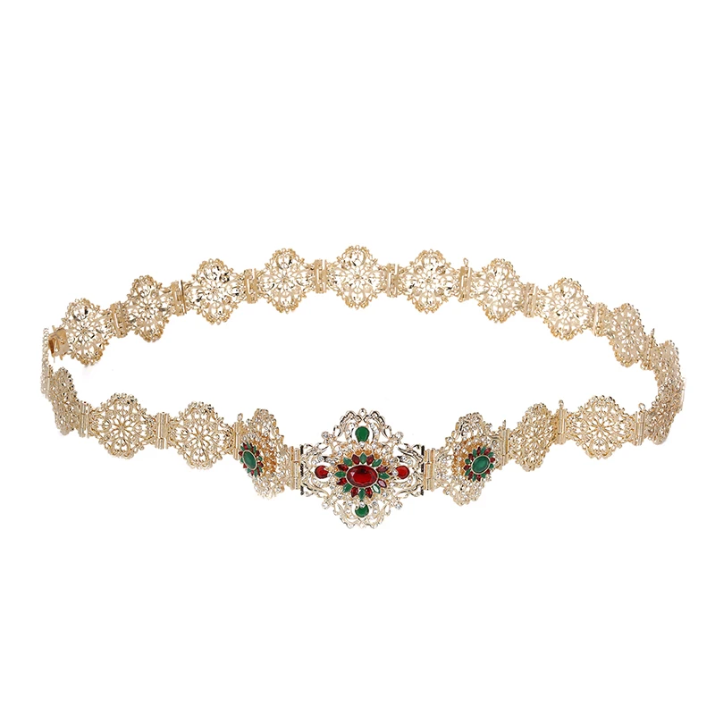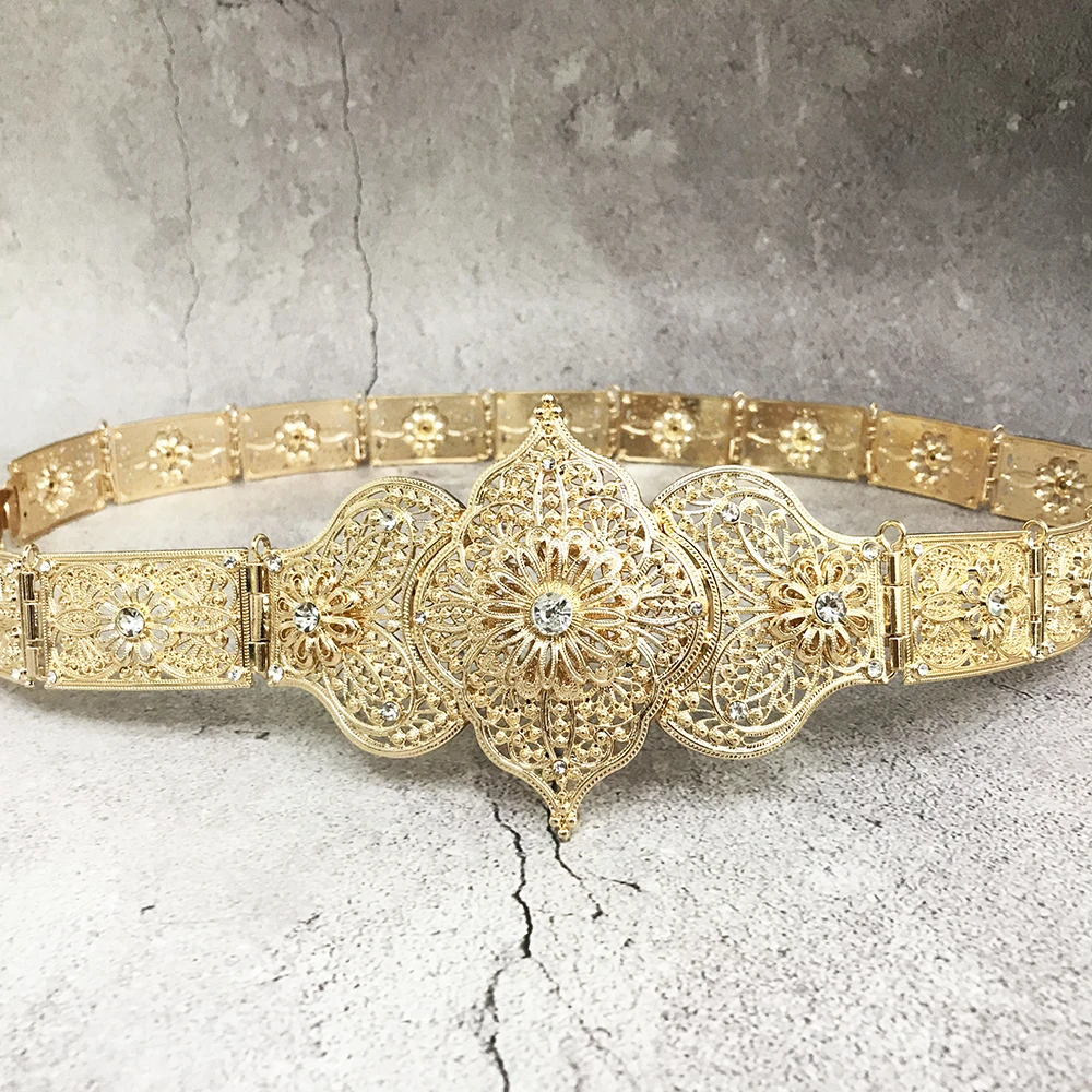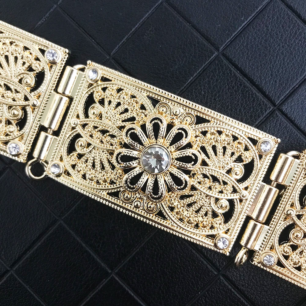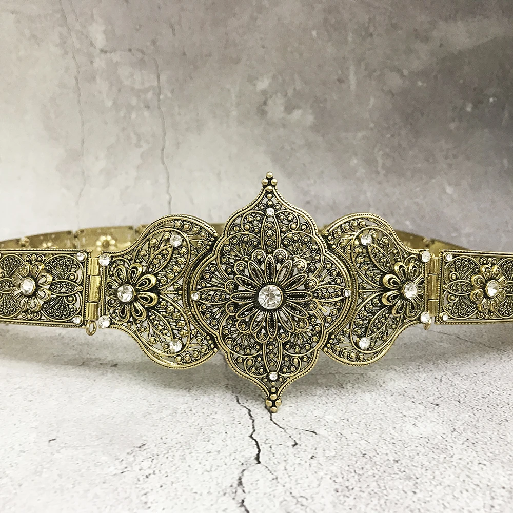 Vingate Wedding Party Crystal Belt Jewel Metal Fine Engraving Hollow Flower Original Design Adjustable Bride Waist Chain Jewelr
